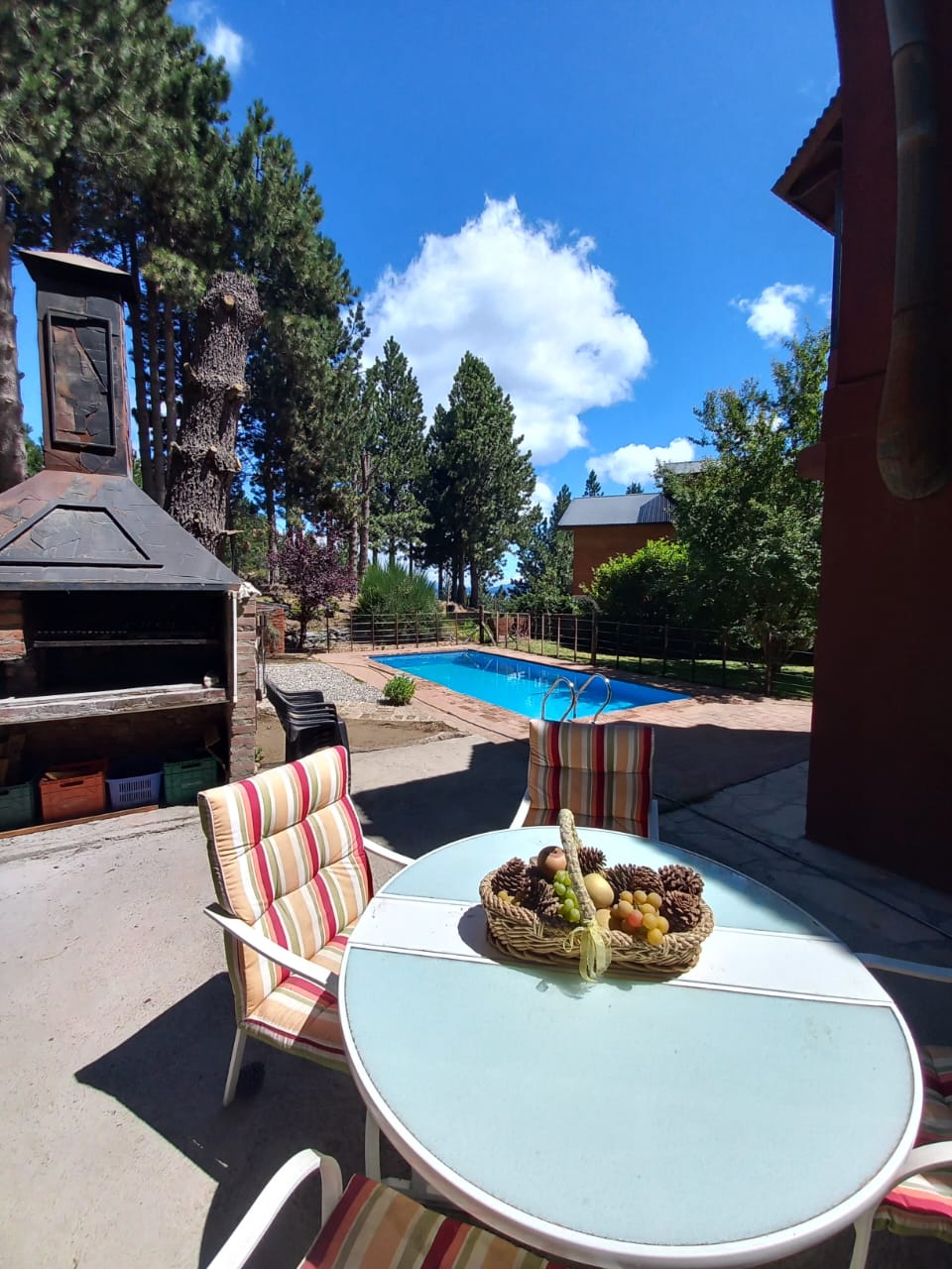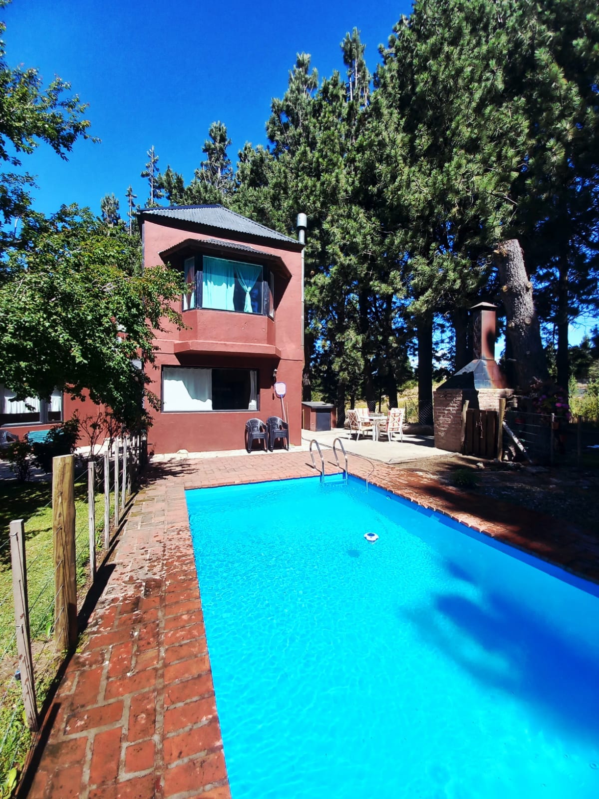 En el exterior, encontrarás una gran pileta cercada, perfecta para disfrutar durante los días más cálidos, además de un amplio parque con mesa, sillas y parrilla, todo rodeado de naturaleza.