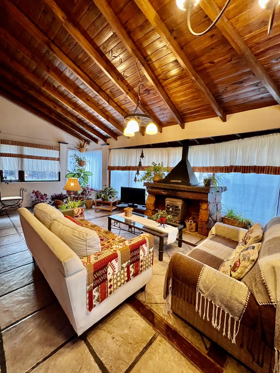 El cómodo living, con una cálida salamandra y TV, es el lugar ideal para relajarte después de un día explorando la zona.
