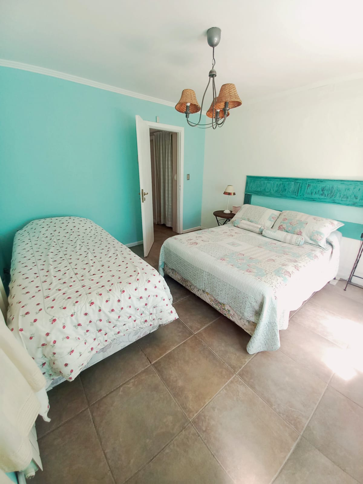 La propiedad tiene tres habitaciones: una matrimonial, otra matrimonial con una cama individual y una triple, lo que la hace ideal para grupos o familias. Además, dispone de dos baños completos para mayor comodidad.