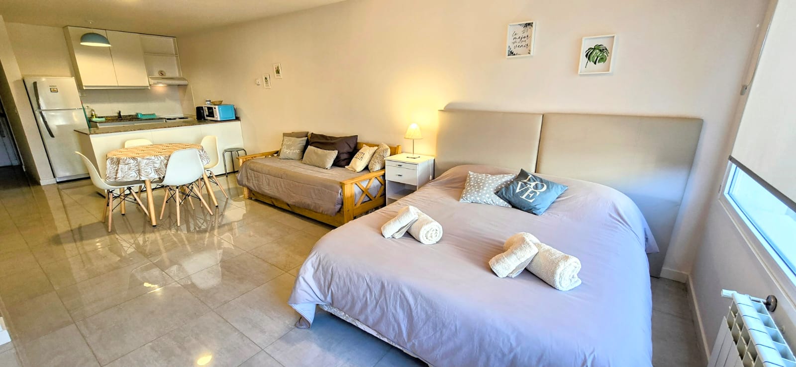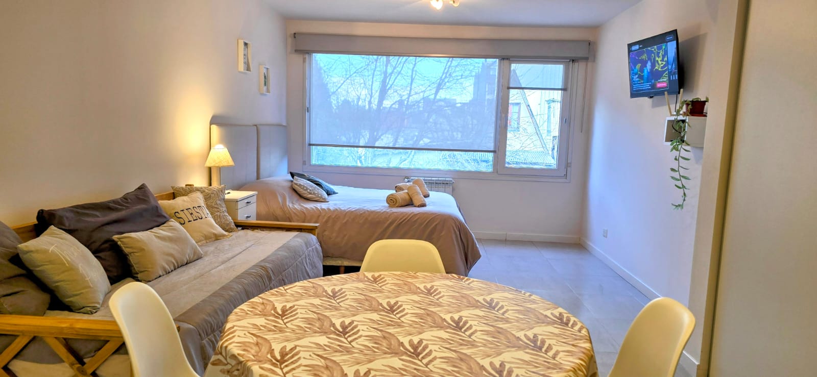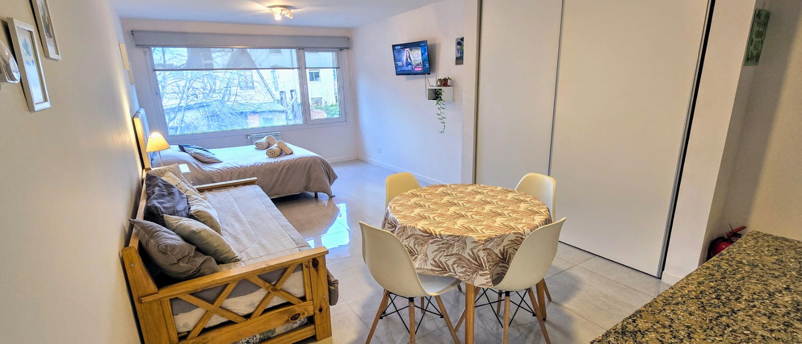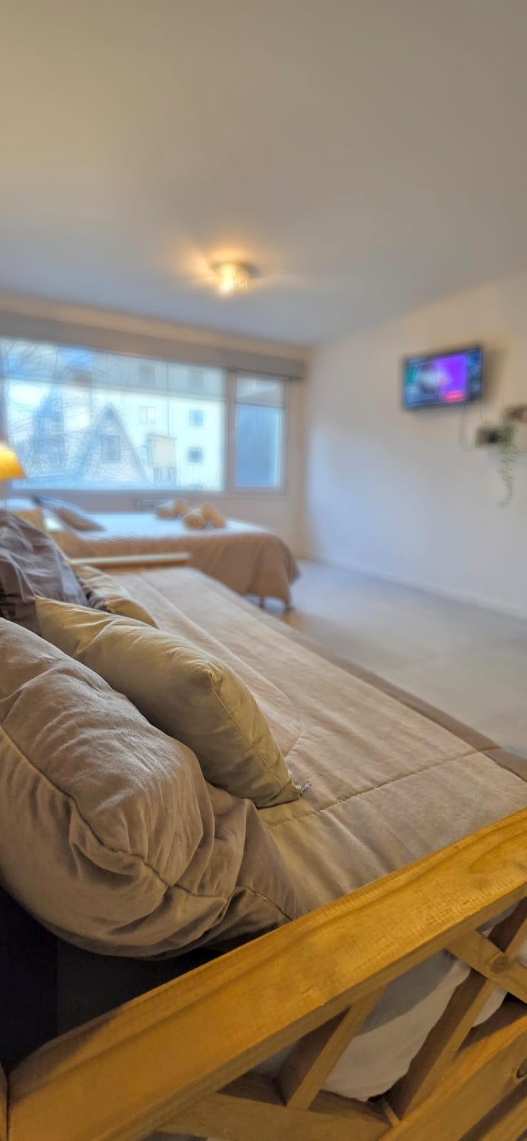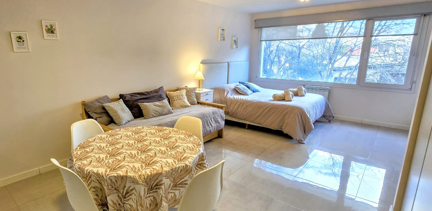 Disfrutá de este luminoso y acogedor monoambiente, ubicado en un edificio contemporáneo, a tan solo cinco cuadras de la calle principal. Ideal para parejas, amigos o viajeros solitarios que buscan comodidad y buena ubicación.