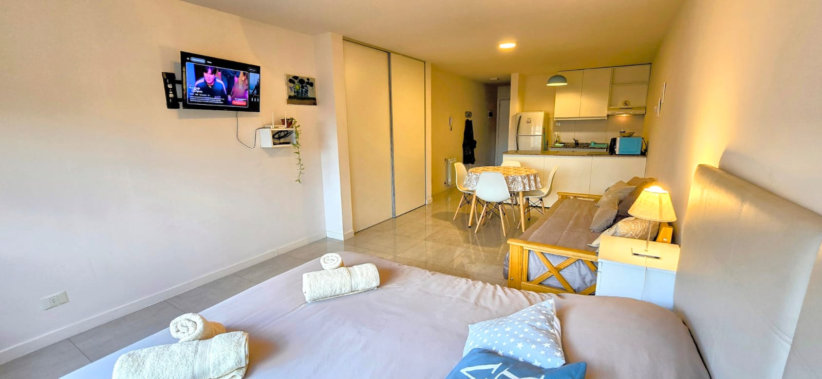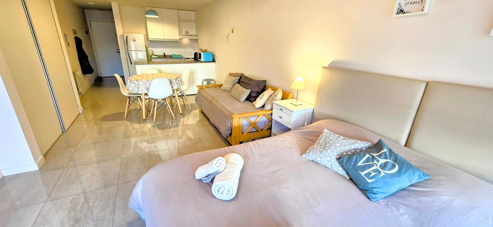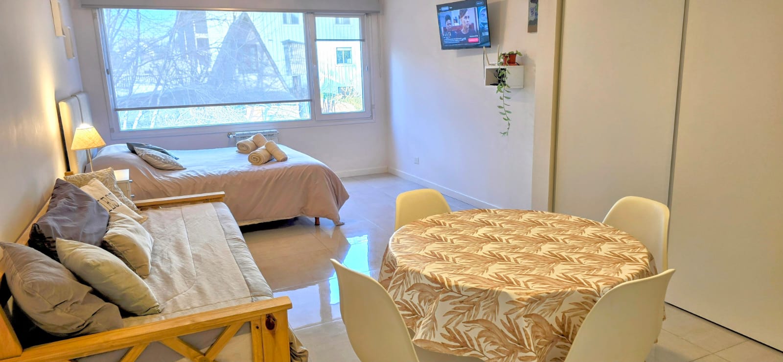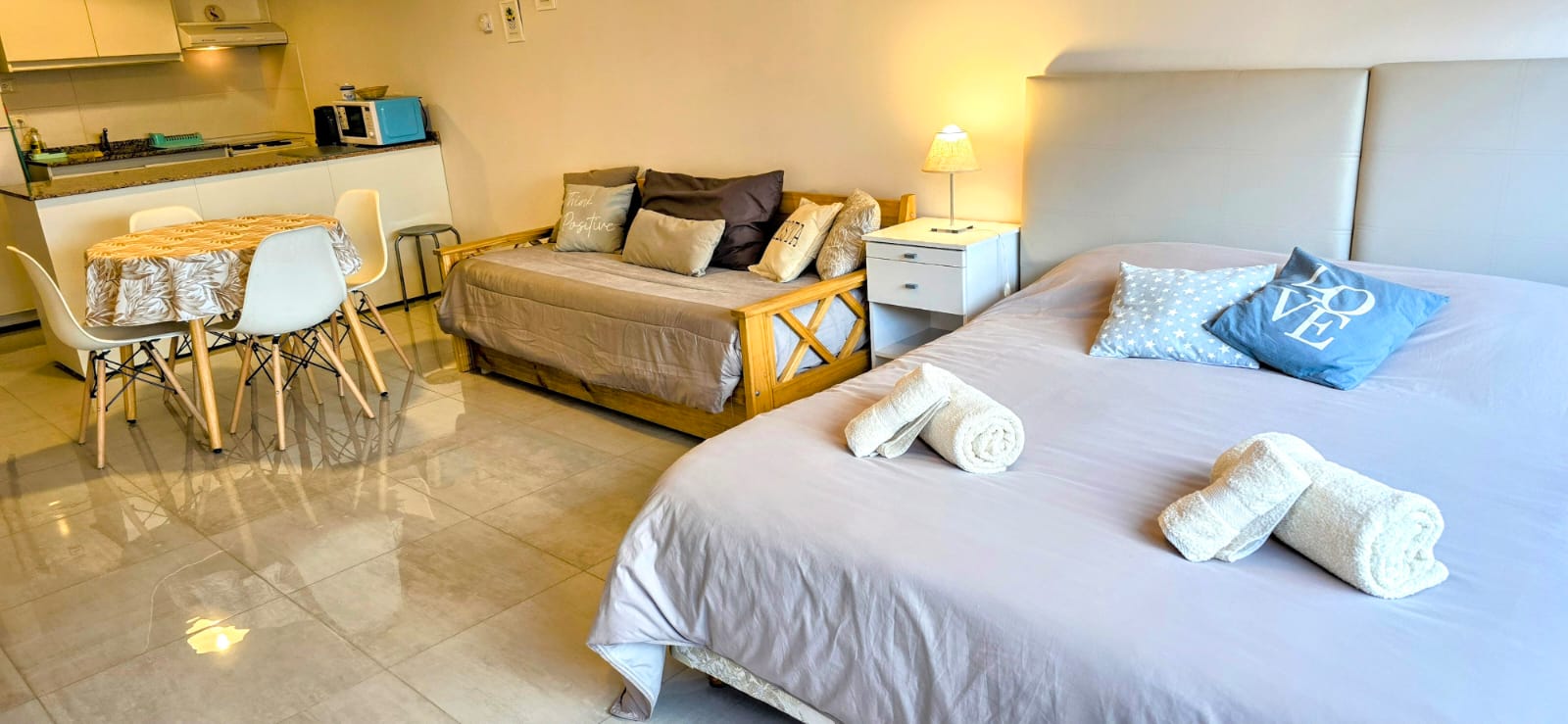 Disfrutá de este luminoso y acogedor monoambiente, ubicado en un edificio contemporáneo, a tan solo cinco cuadras de la calle principal. Ideal para parejas, amigos o viajeros solitarios que buscan comodidad y buena ubicación.