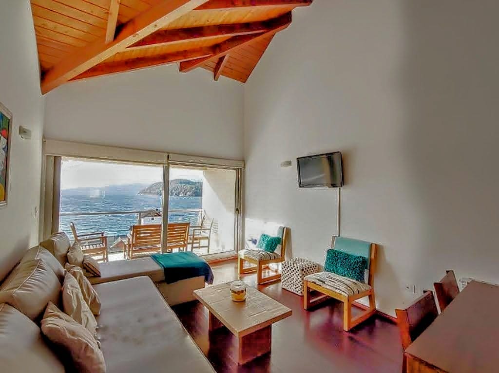 Este elegante y luminoso departamento se encuentra en un exclusivo complejo con pileta climatizada, justo frente a Playa Bonita, una de las más famosas y encantadoras de la zona. Con capacidad para hasta 4 personas, ofrece una experiencia de descanso única: la habitación principal tiene una vista espectacular al lago, ideal para despertar con paisajes inolvidables. En el living, dos sillones cama individuales resultan perfectos para niños. Cuenta además con cocina completamente equipada, baño completo y todos los detalles necesarios para una estadía cómoda y de calidad. Un lugar soñado para disfrutar del paisaje, la tranquilidad y la mejor ubicación.