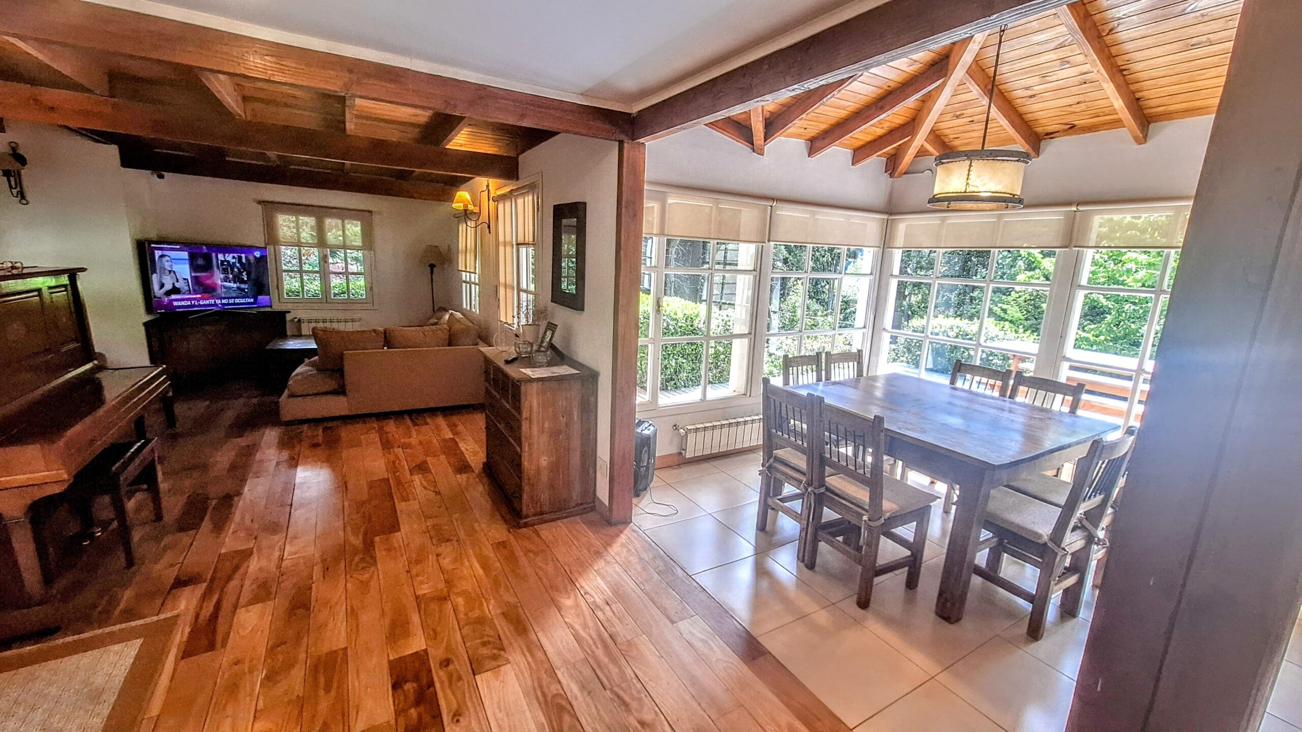Ubicada en un exclusivo barrio de Bariloche, a tan solo metros del lago, esta hermosa casa ofrece el equilibrio perfecto entre confort, privacidad y una ubicación inmejorable. Distribuida en dos plantas, cuenta con 4 amplias habitaciones, dos baños completos y un toilette, lo que la convierte en el espacio ideal para una familia.