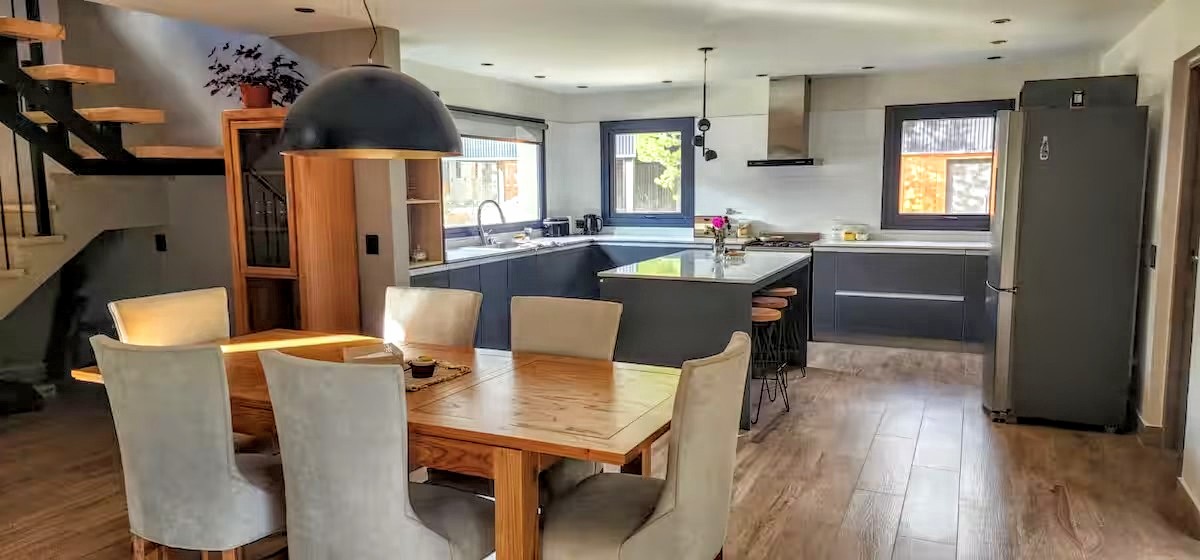 Su cocina está totalmente equipada, con lavavajillas, lavarropas y todo lo necesario para sentirte como en casa. Los ambientes son muy luminosos, lo que resalta la calidez de cada espacio.