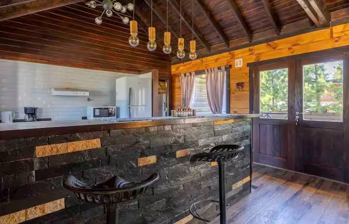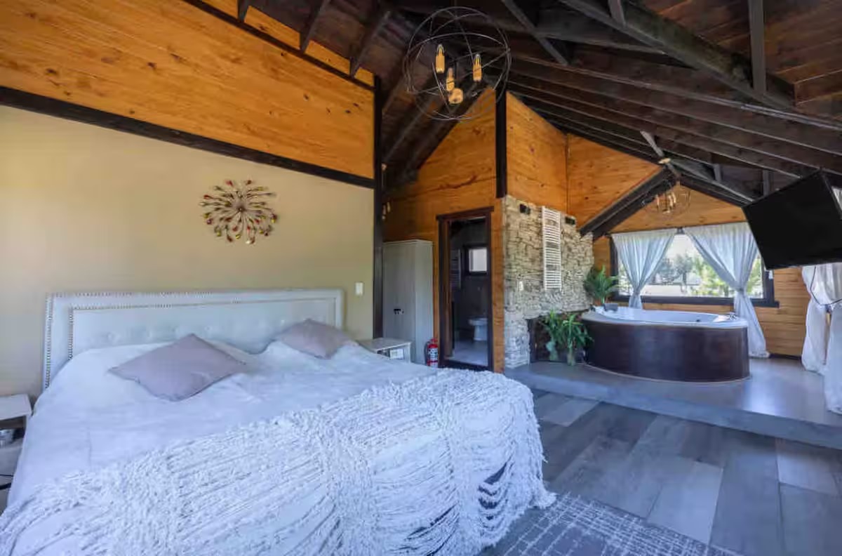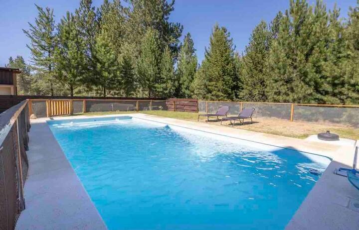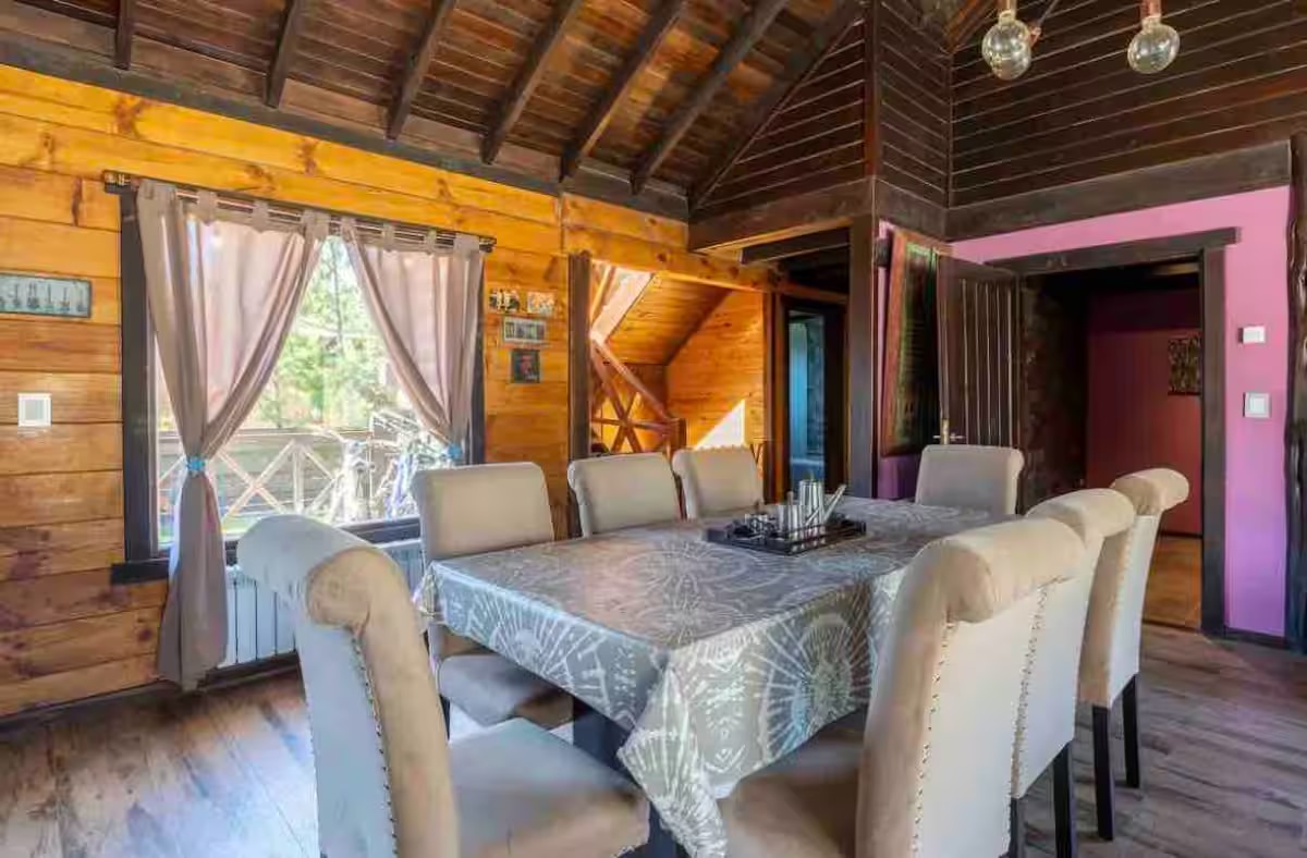 En el exterior encontrarás todo lo necesario para momentos inolvidables: pileta privada, espacio para fogatas, zona de comedor al aire libre, Parrilla, estacionamiento propio y un jardín rodeado de naturaleza.