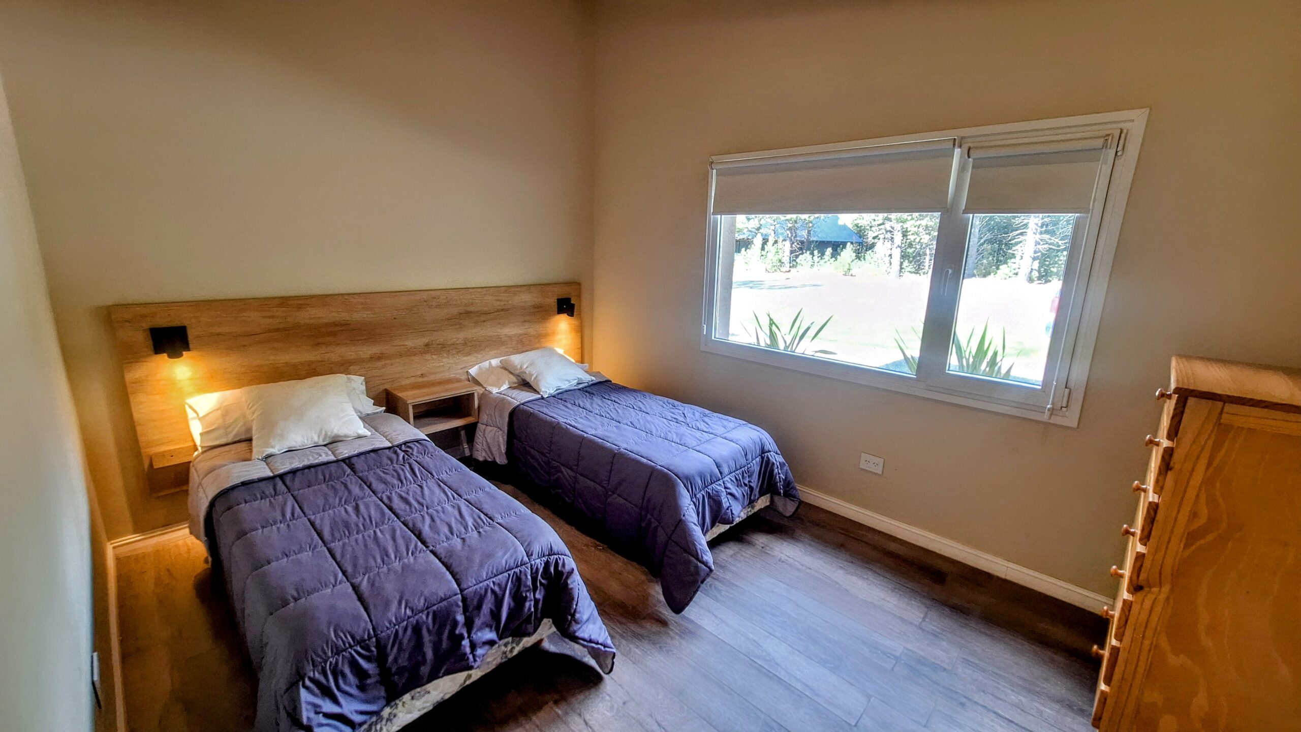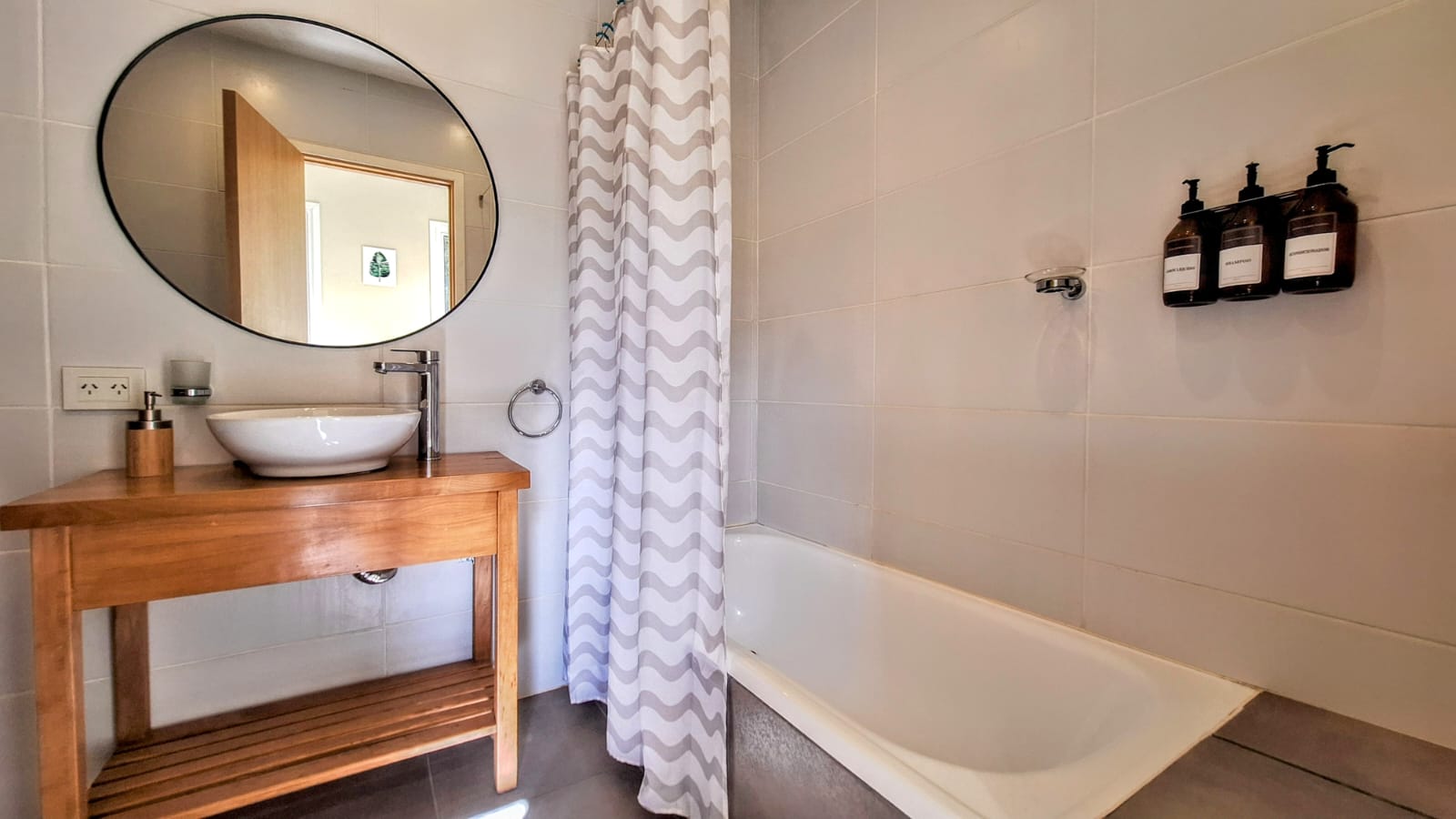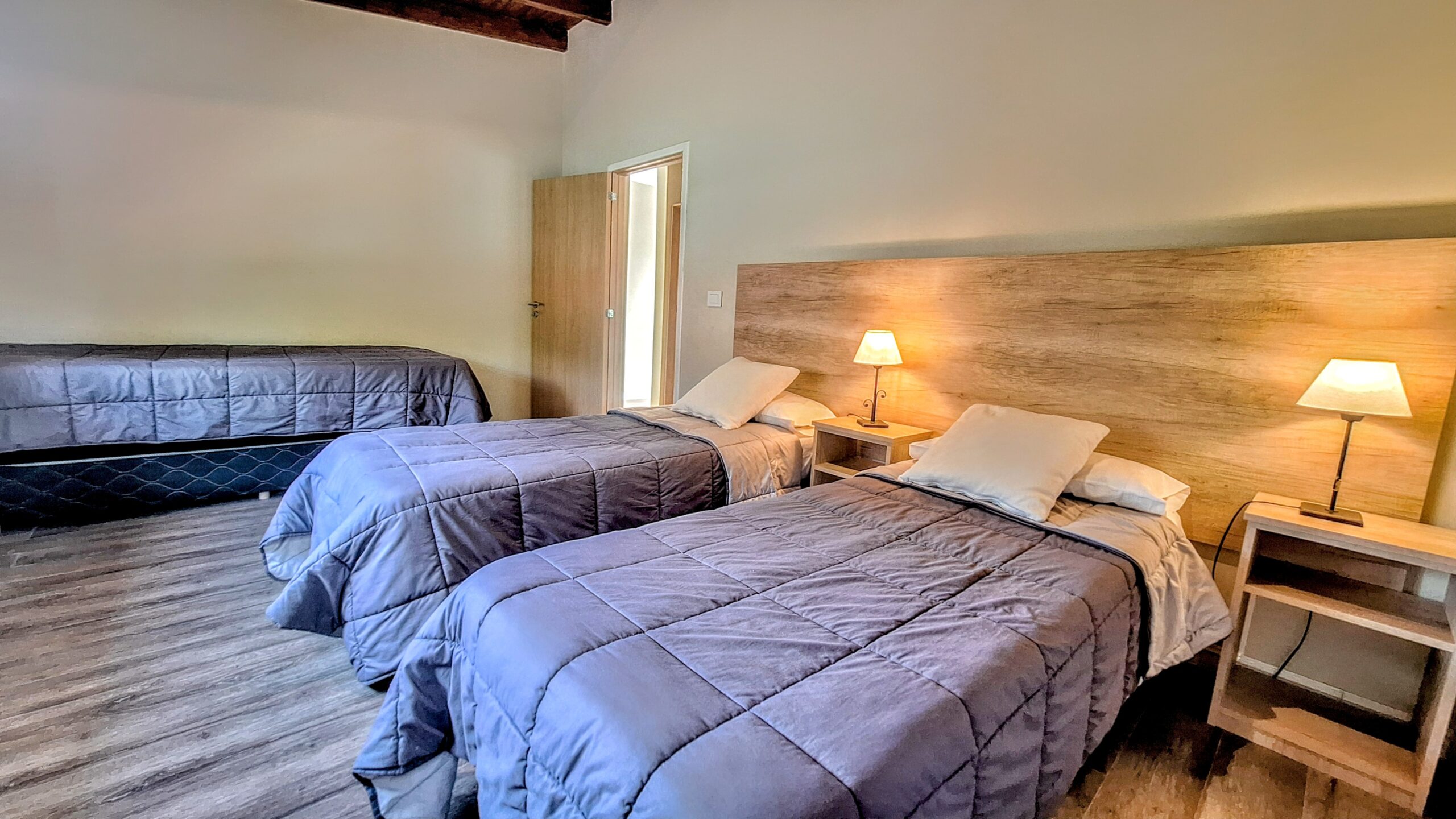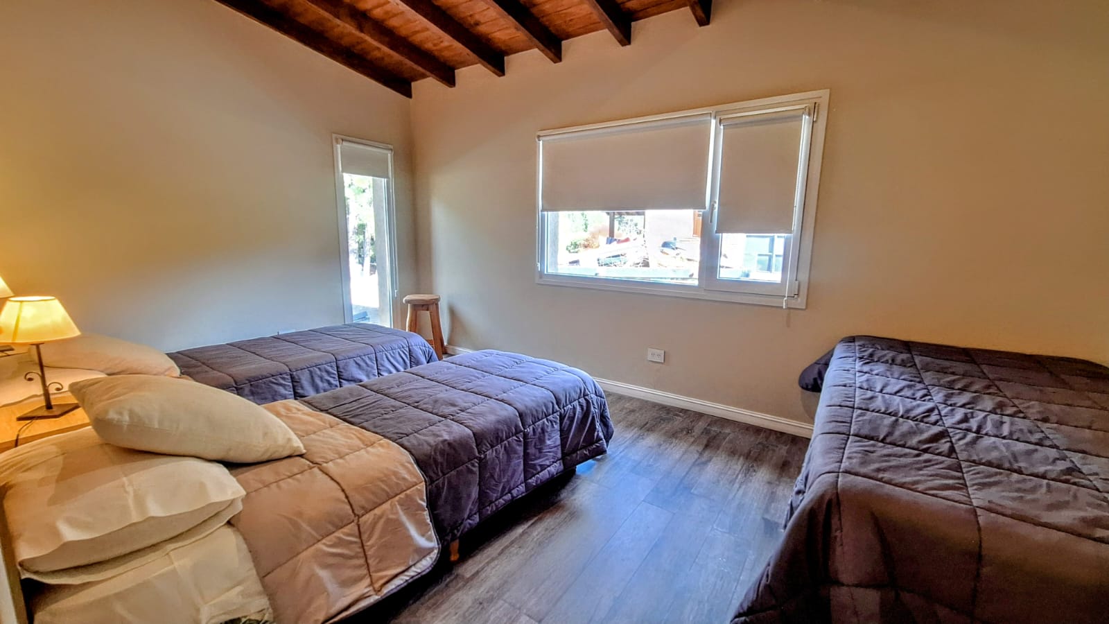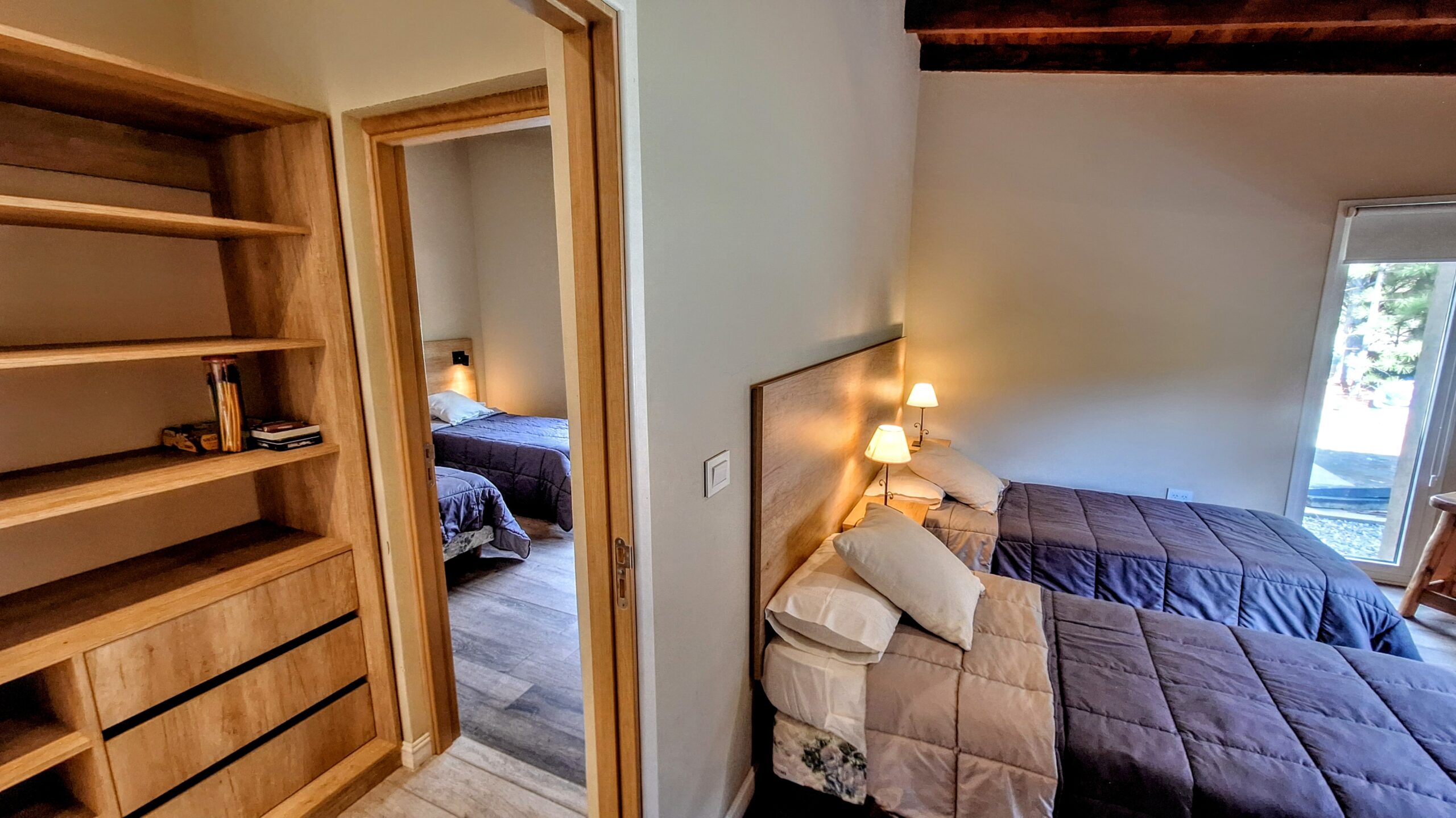 La habitación matrimonial ofrece vistas al jardín, un vestidor espacioso y un elegante baño en suite para una experiencia de descanso total. La casa también cuenta con una habitación doble con somieres individuales, y una tercera habitación cuádruple, ideal para grupos o familias, donde una de las camas es carrito.