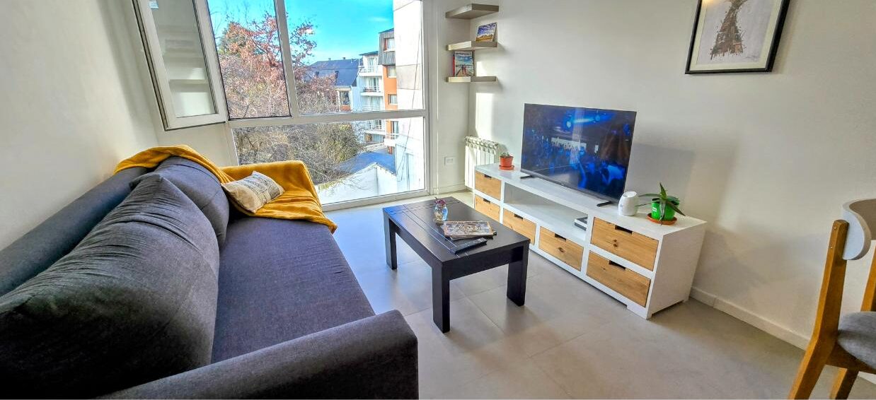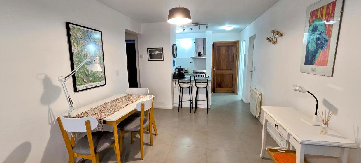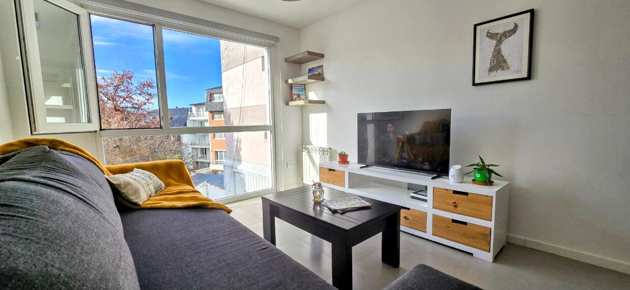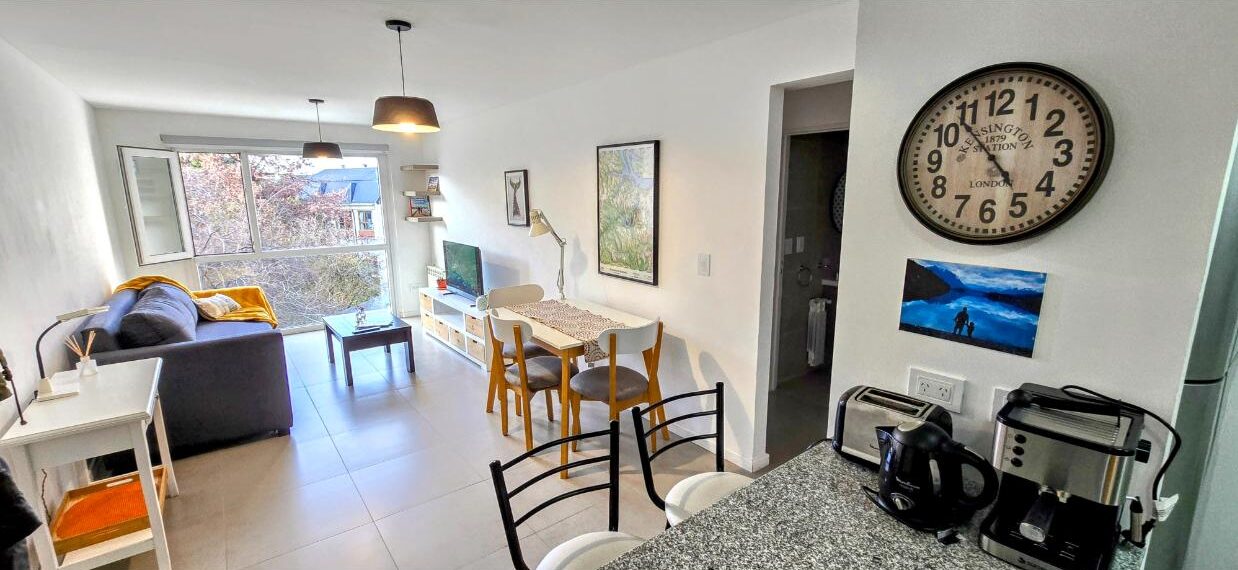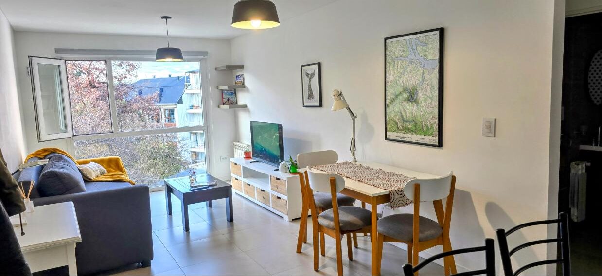 Este cómodo y amplio departamento de tres ambientes es ideal para disfrutar Bariloche con todo el confort. Cuenta con una habitación matrimonial, una segunda habitación con cucheta, un living comedor espacioso y una cocina completamente equipada, perfecta para quienes disfrutan cocinar incluso estando de viaje.