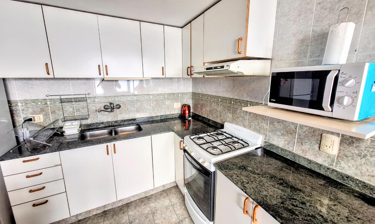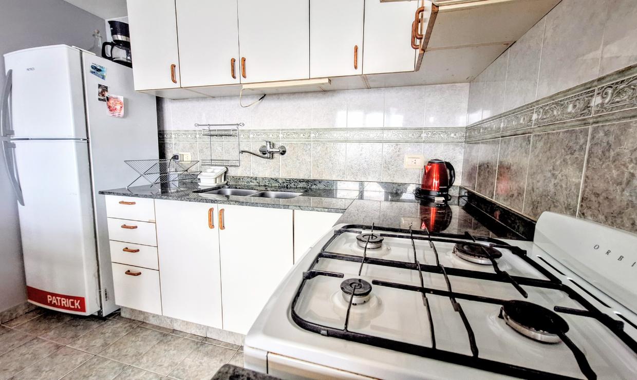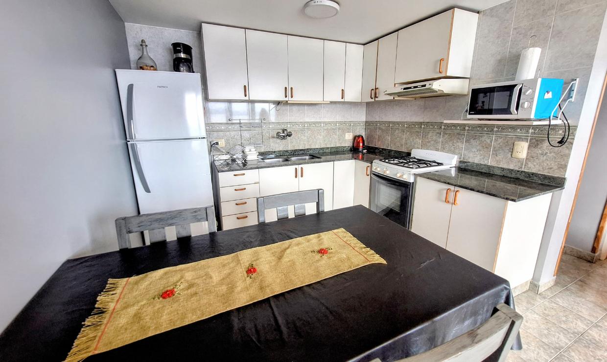 La cocina está totalmente equipada para una estadía práctica y confortable. Desde el departamento se puede disfrutar de una hermosa vista frontal al lago, que aporta un entorno único y relajante.