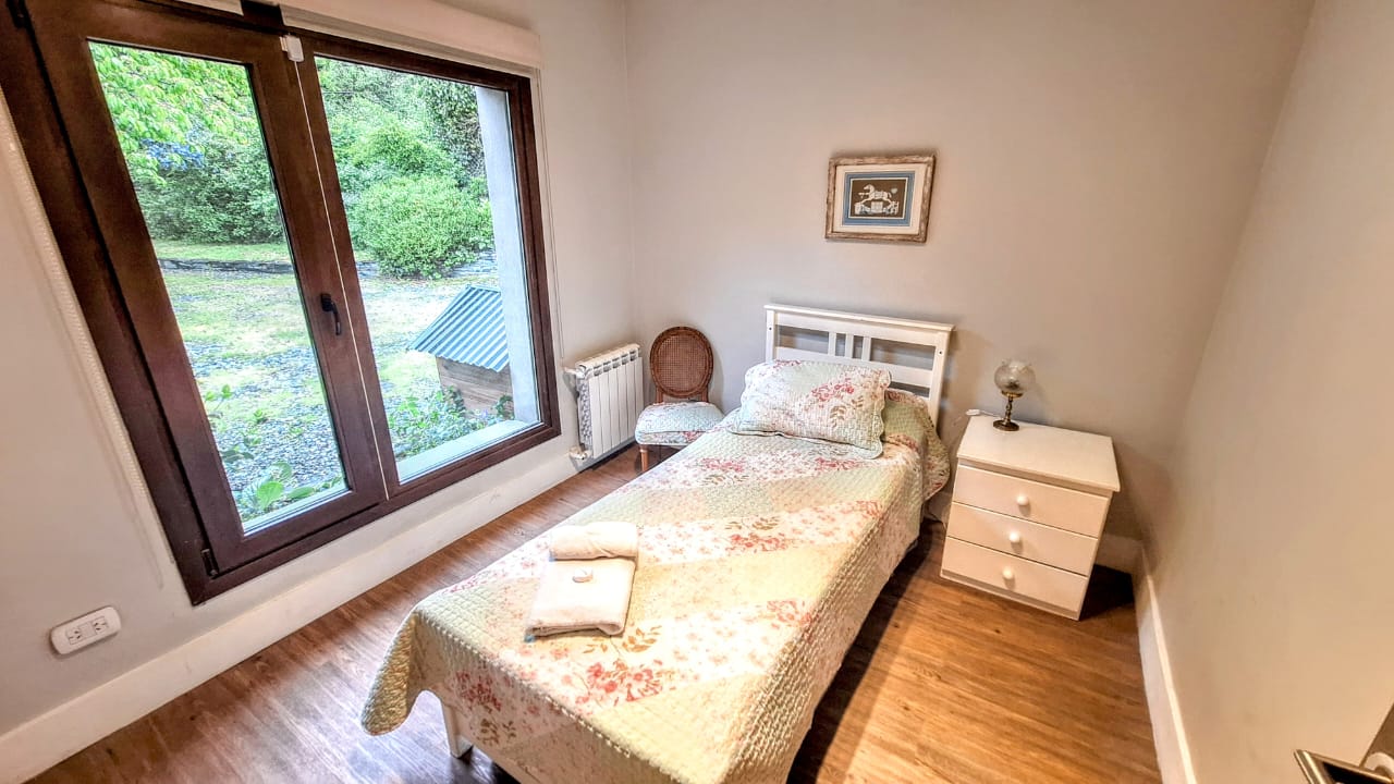 Ubicada en un amplio terreno plano de 700 m² y rodeada de naturaleza, esta cómoda casa de dos plantas es ideal para disfrutar en familia o con amigos. A solo unos pasos del Lago Nahuel Huapi, ofrece un entorno relajado, seguro y con vistas abiertas a la vegetación patagónica y al lago.
