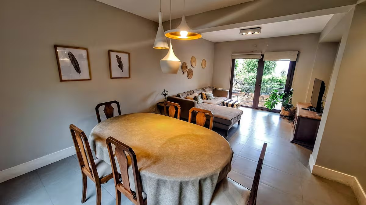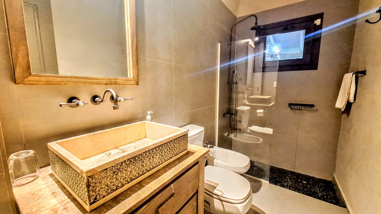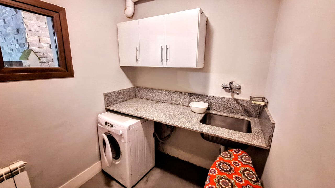 En la planta baja, cuenta con dos habitaciones, un baño completo con ducha y un toilette adicional. El área social es amplia y luminosa, con un living-comedor acogedor y una cocina integrada totalmente equipada, perfecta para disfrutar de comidas compartidas. También dispone de lavadero independiente y un espacio extra para tareas de limpieza.