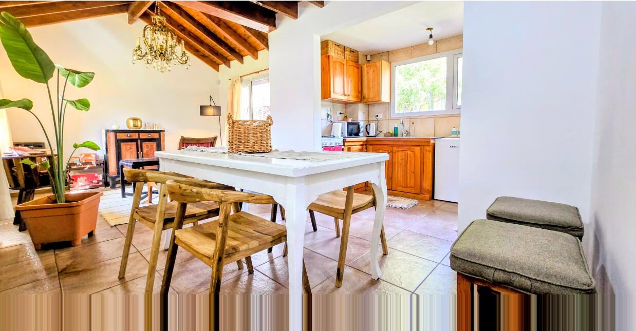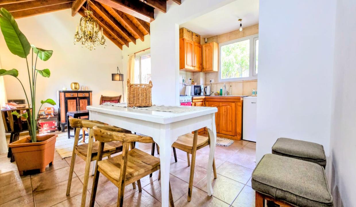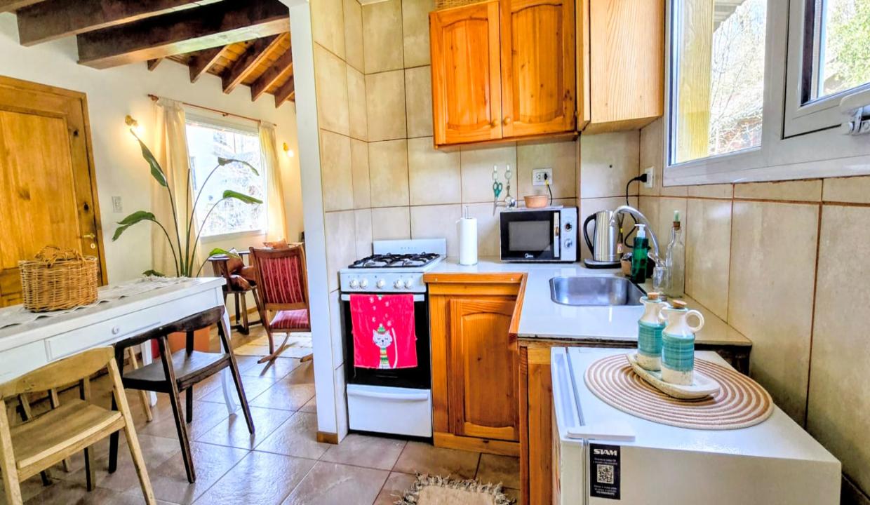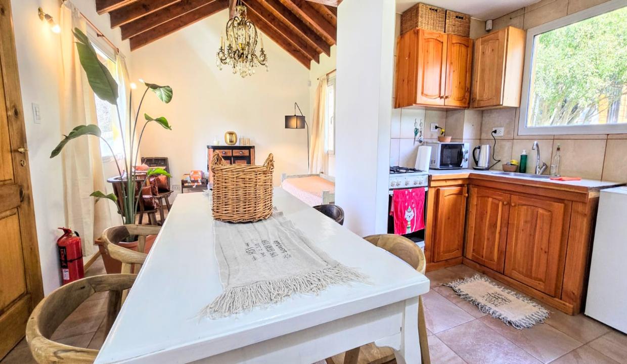 Planta baja: amplia y cómoda cocina integrada al living comedor, baño completo con ducha y habitación principal con cama matrimonial.