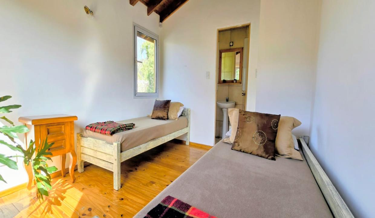 Planta alta: una segunda habitación con baño en suite, equipada con cama carrito (una arriba y otra abajo) y otra cama individual.