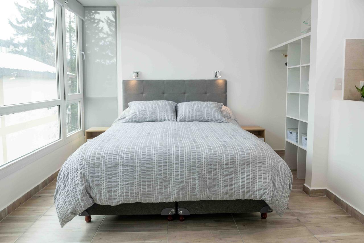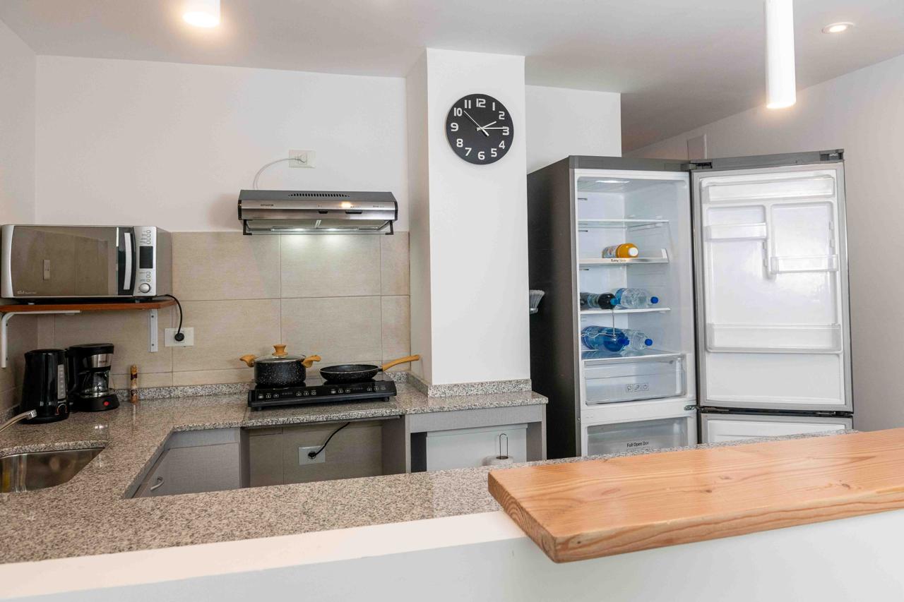 Pensado para dos personas, cuenta con un cómodo sommier queen, baño completo y una cocina abierta equipada con anafe, microondas y todos los utensilios necesarios. El living integra un sofá de diseño y un Smart TV, creando el ambiente perfecto para descansar tras un día de paseos.