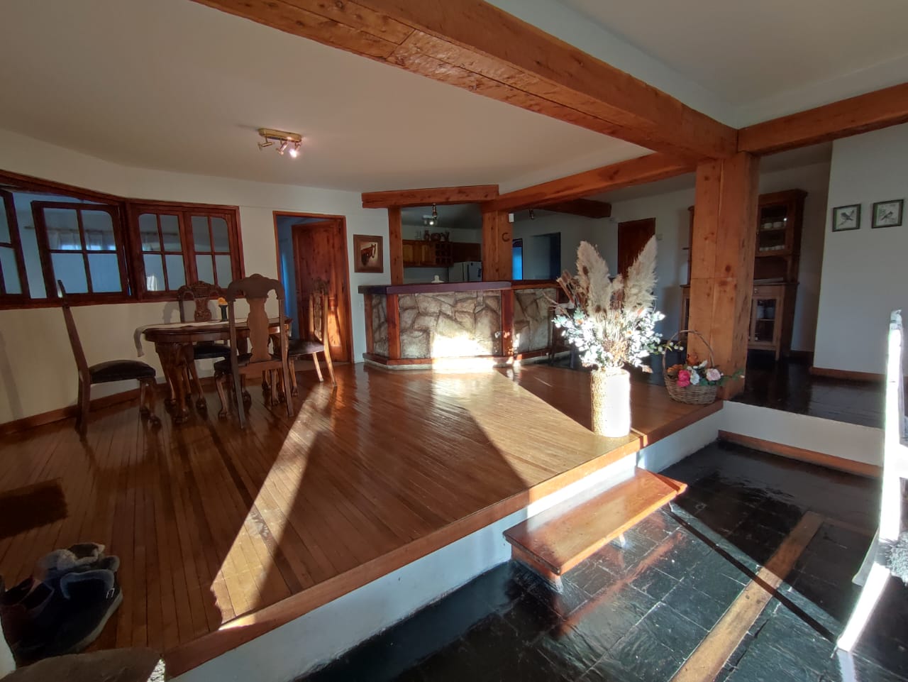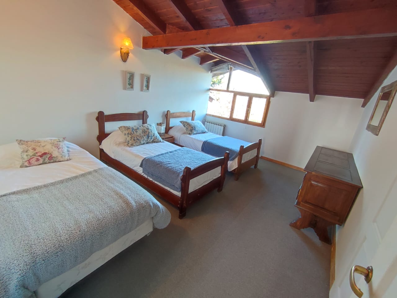 Esta amplia y cálida casa de estilo austríaco se encuentra a solo 8 km del centro de Bariloche y del Cerro Catedral, y a pocas cuadras del Lago Nahuel Huapi. Ubicada en un entorno natural lleno de árboles y flores, es ideal para familias o grupos que buscan confort, tranquilidad y espacio.