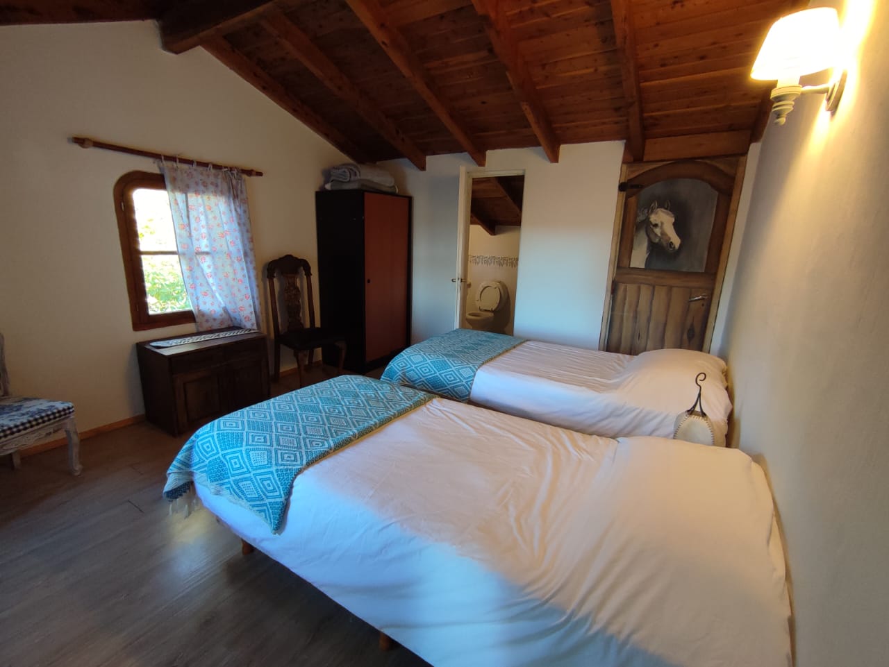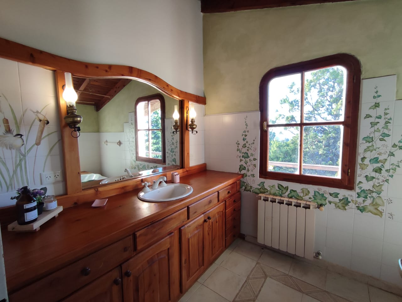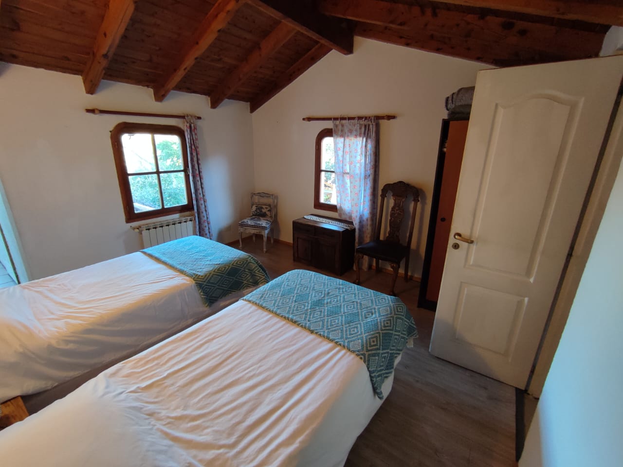 En la planta alta, un cómodo espacio de descanso con cama individual te recibe al subir la escalera. El dormitorio principal cuenta con jacuzzi y balcón con una hermosa vista. También hay una habitación triple, una doble con baño en suite, una segunda cocina y otro baño completo.