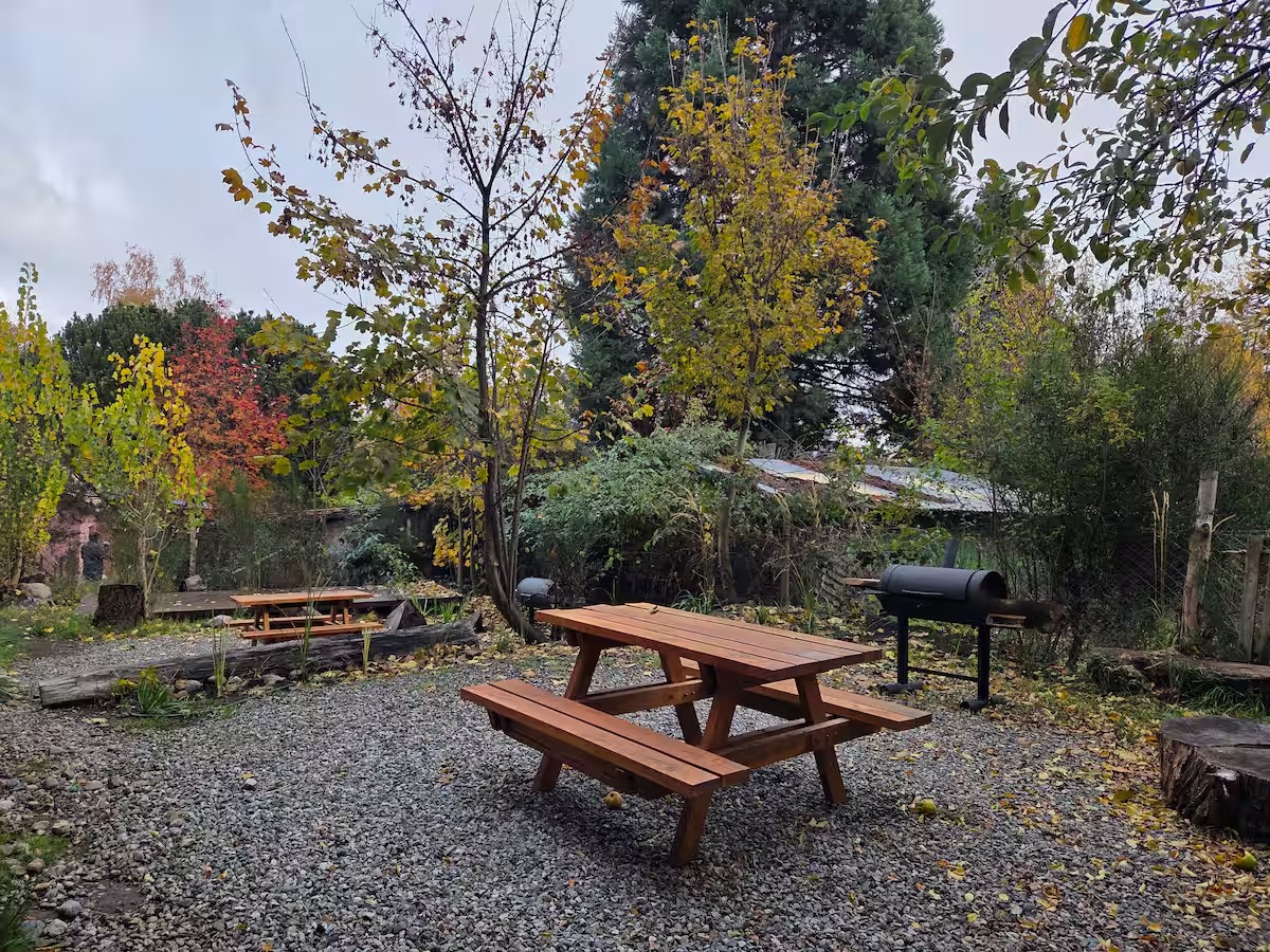 En su jardín pueden disfrutar de los chulengos de uso compartido, perfectos para una parrillada al aire libre con vistas al paisaje patagónico. Se incluye ropa blanca y amenities para el primer día.