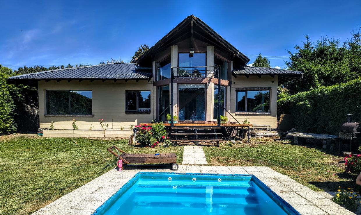 En el exterior, un hermoso parque rodea la casa e incluye una pileta climatizada (solo disponible en verano). Además, dispone de un amplio quincho, ideal para reuniones, comidas y momentos inolvidables en grupo.
