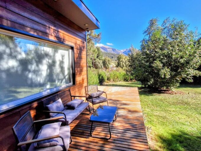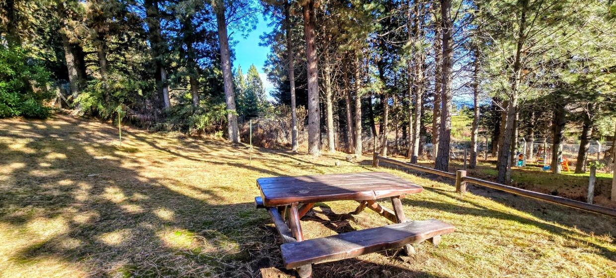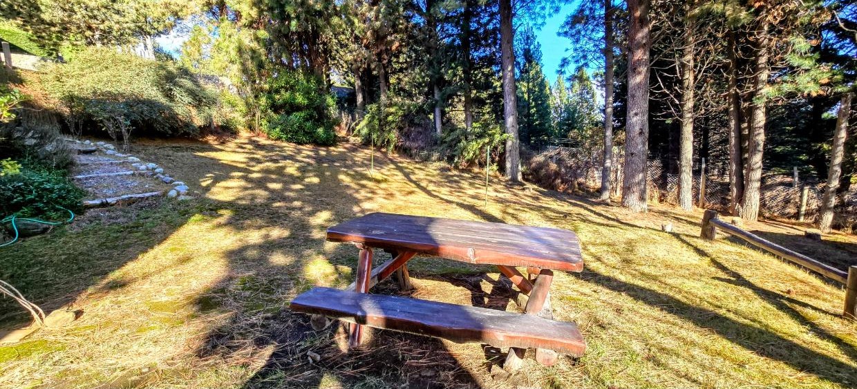El gran patio arbolado es el corazón de la casa: un espacio perfecto para que grandes y chicos disfruten de la naturaleza sin salir de la propiedad. Además, cuenta con un quincho abierto con una parrilla amplia, ideal para asados patagónicos y encuentros al aire libre.