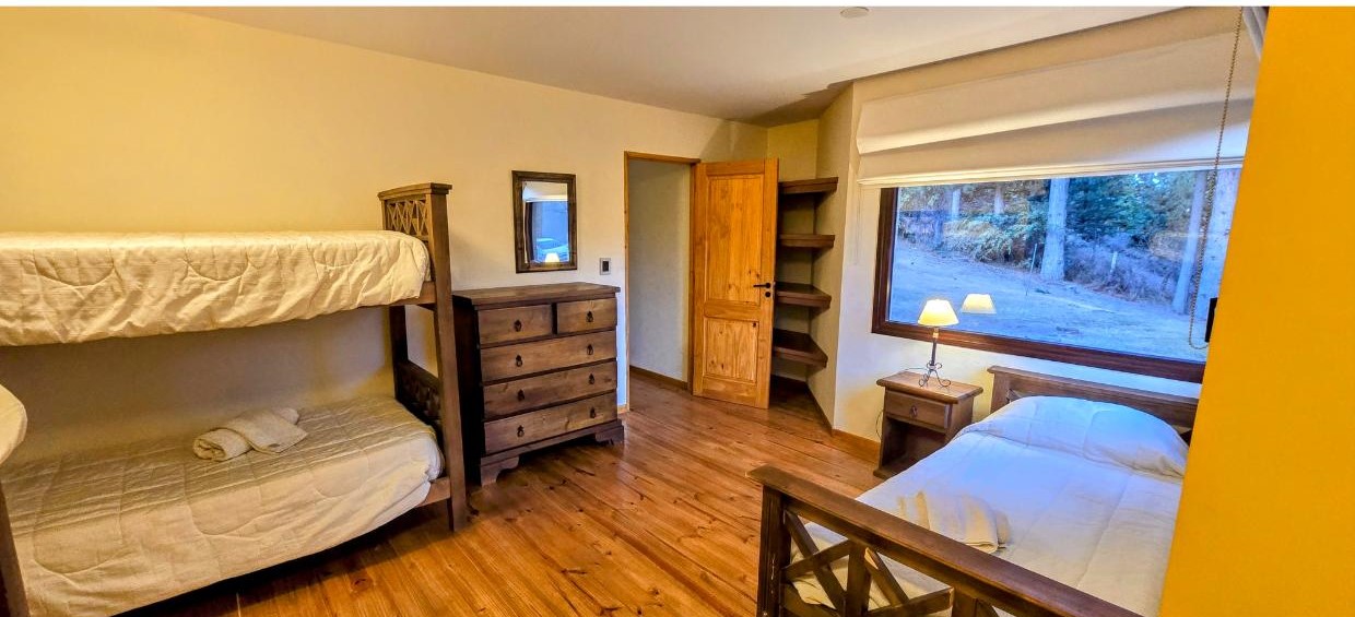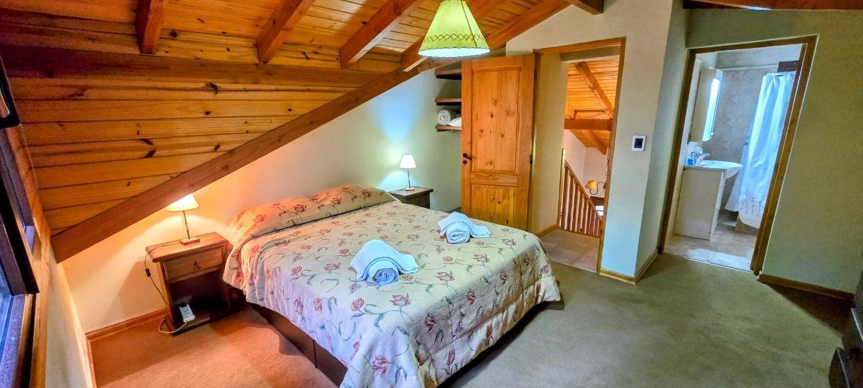 Pensada para recibir hasta 15 huéspedes, es ideal para reuniones familiares, escapadas con amigos o grupos grandes que buscan disfrutar de la Patagonia con total comodidad. Cuenta con 4 habitaciones amplias: dos matrimoniales, una sextuple y una quíntuple, distribuidas para brindar privacidad y descanso a todos los integrantes del grupo.