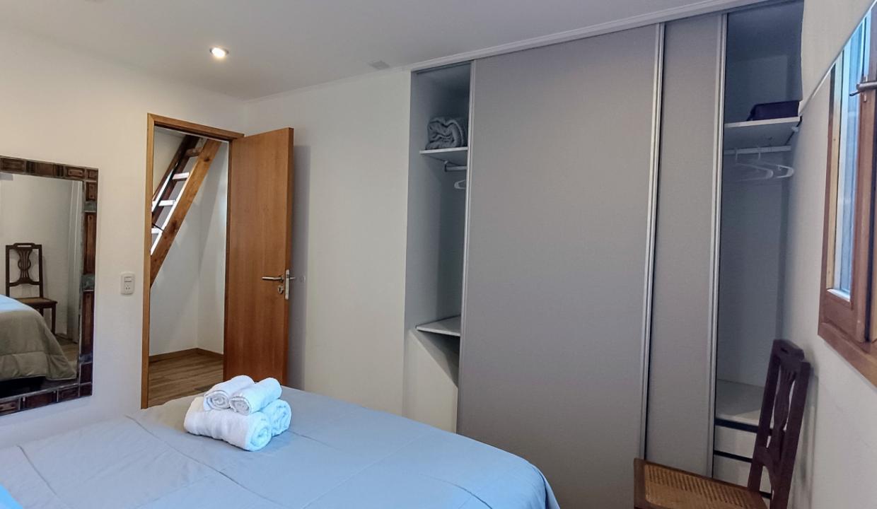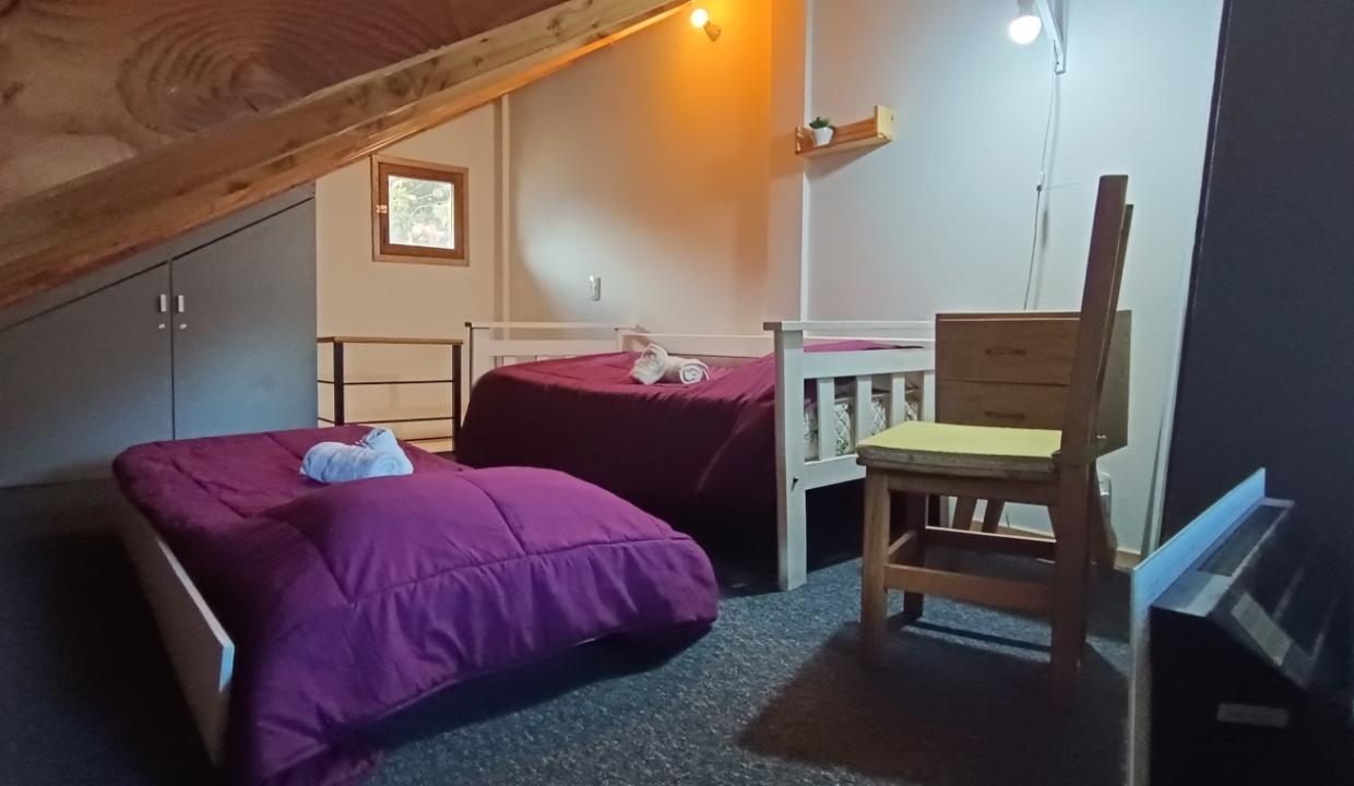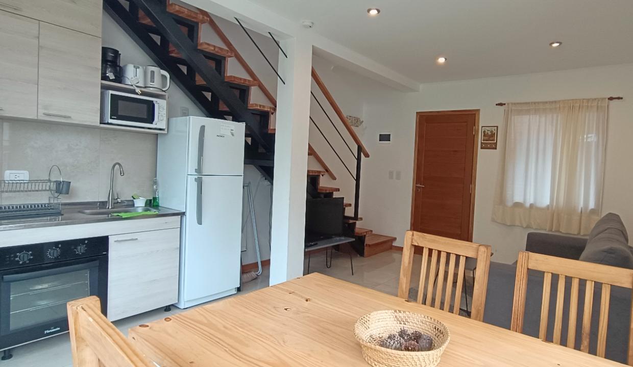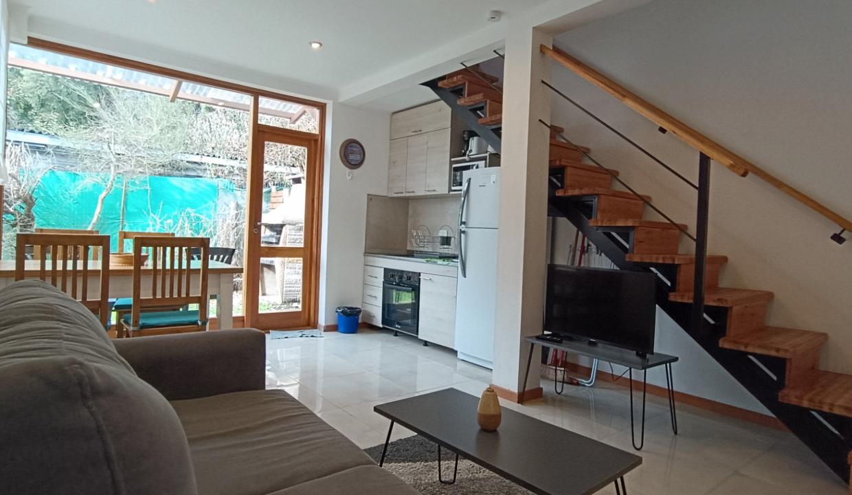 La propiedad cuenta con un dormitorio principal con cama matrimonial y un altillo con dos camas individuales, perfecto para familias o grupos pequeños. El living comedor, con cocina integrada, ofrece un espacio cómodo y funcional para compartir.