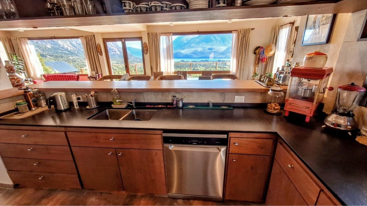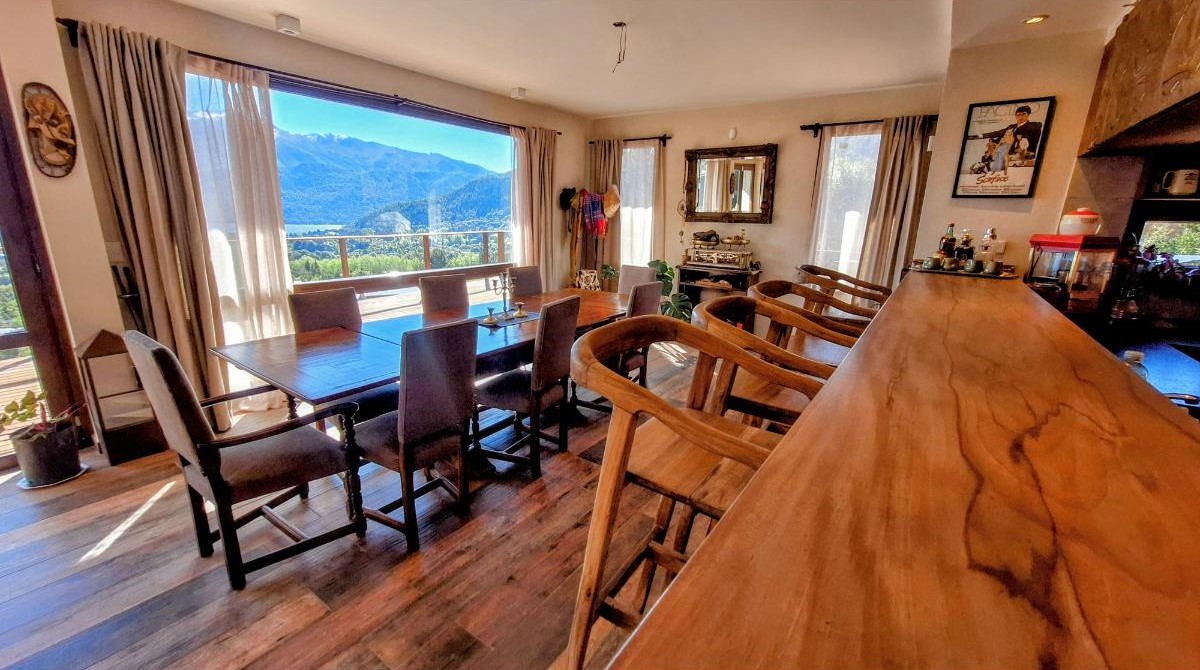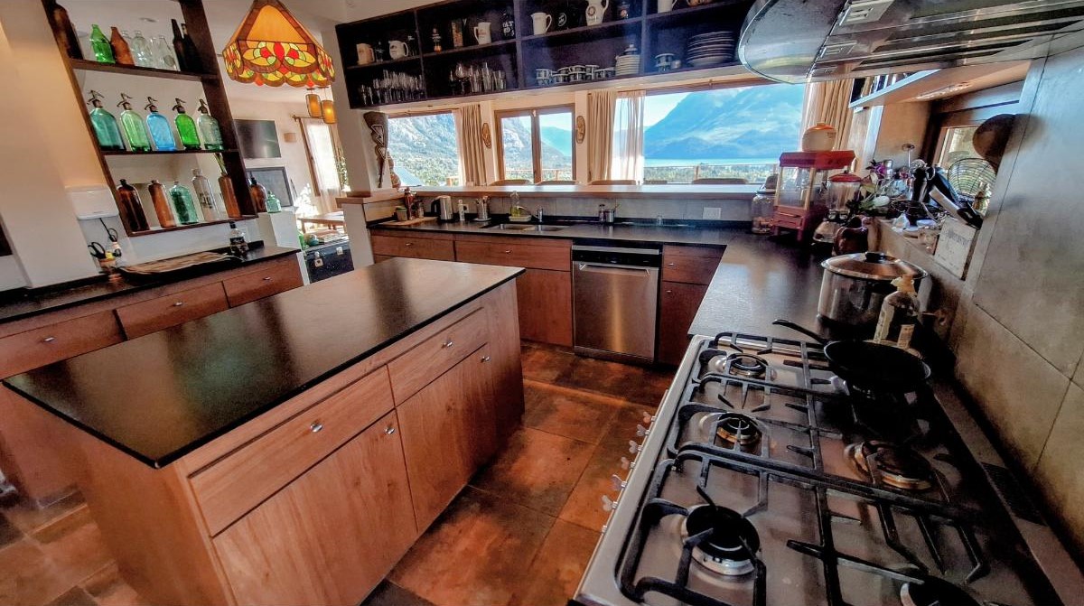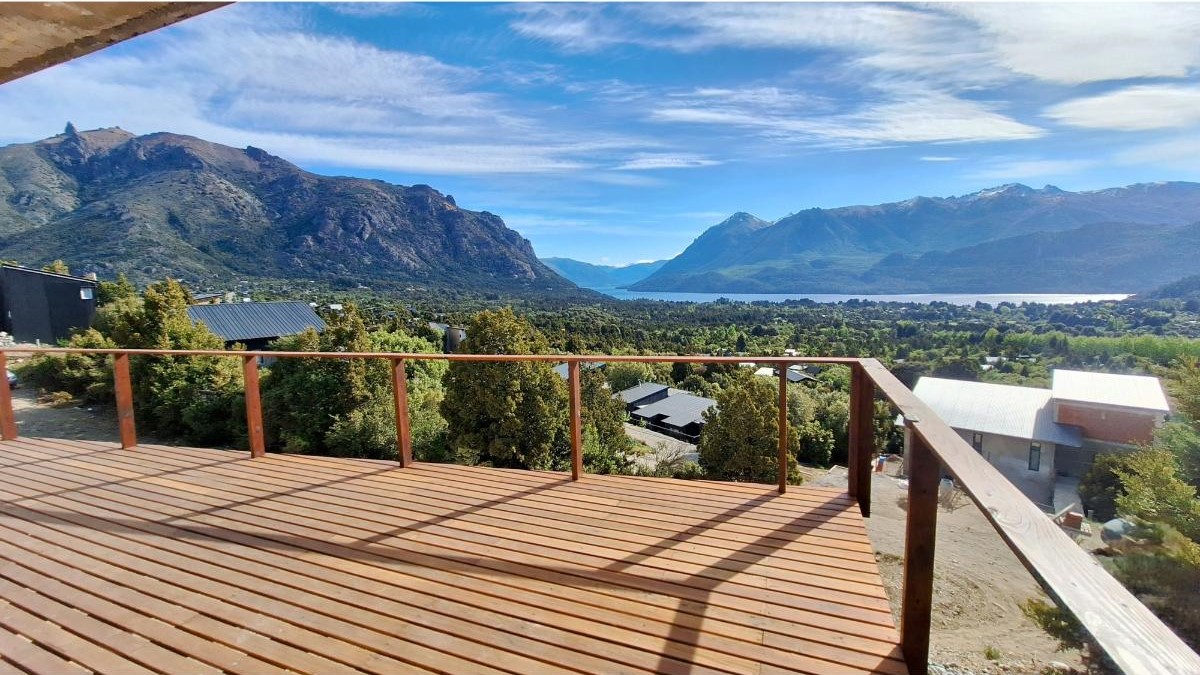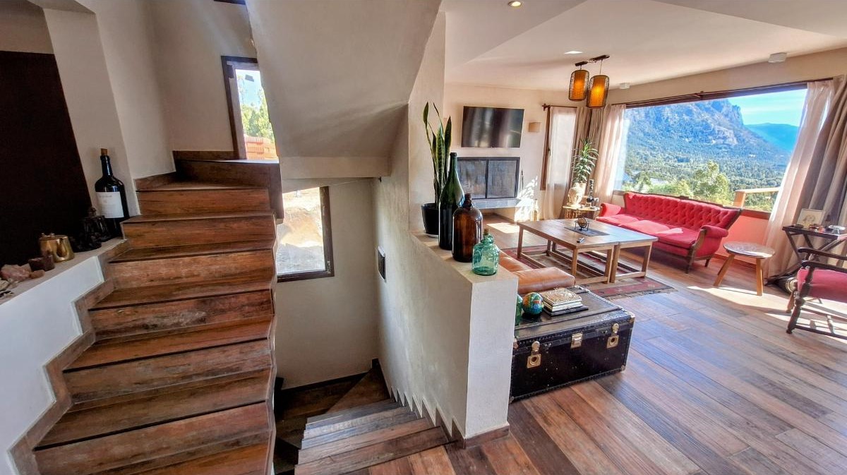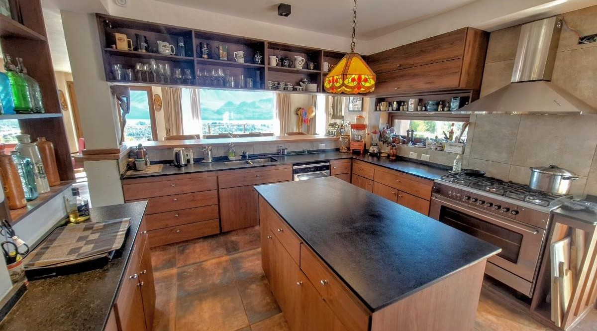 La planta baja sorprende con una cocina super equipada, un lavadero con lavarropas y secarropas, y un gran living comedor donde las vistas se vuelven protagonistas. Desde allí se accede al deck/balcón, el lugar ideal para disfrutar del amanecer sobre el lago o del atardecer entre montañas. También en este piso hay un baño con ducha.