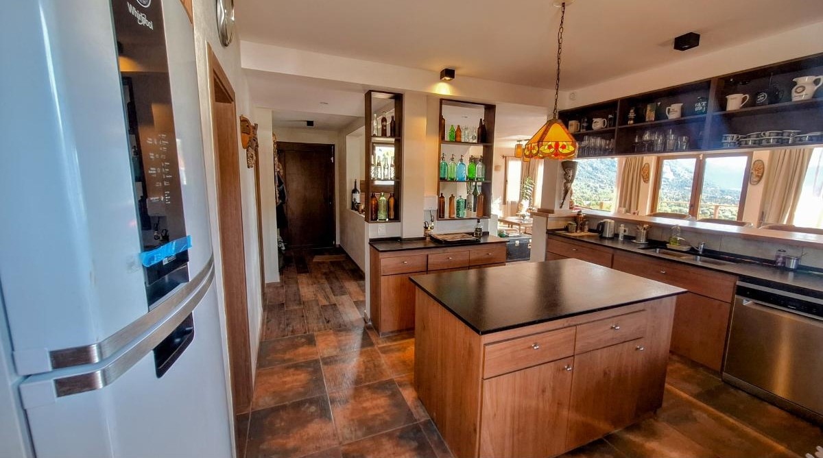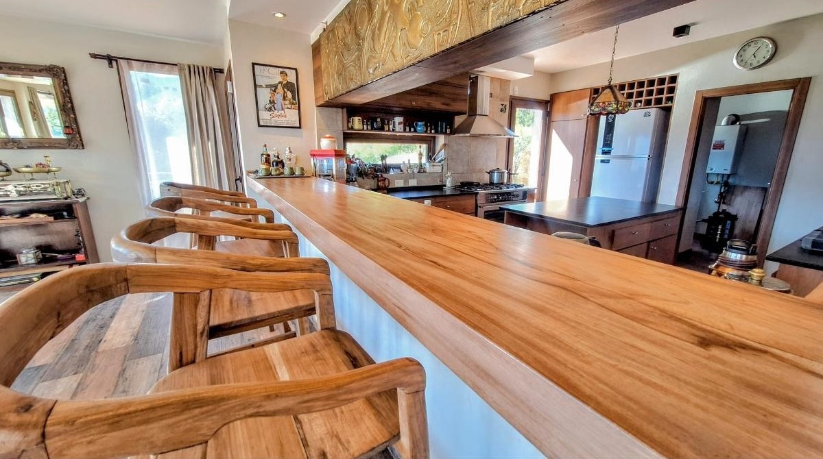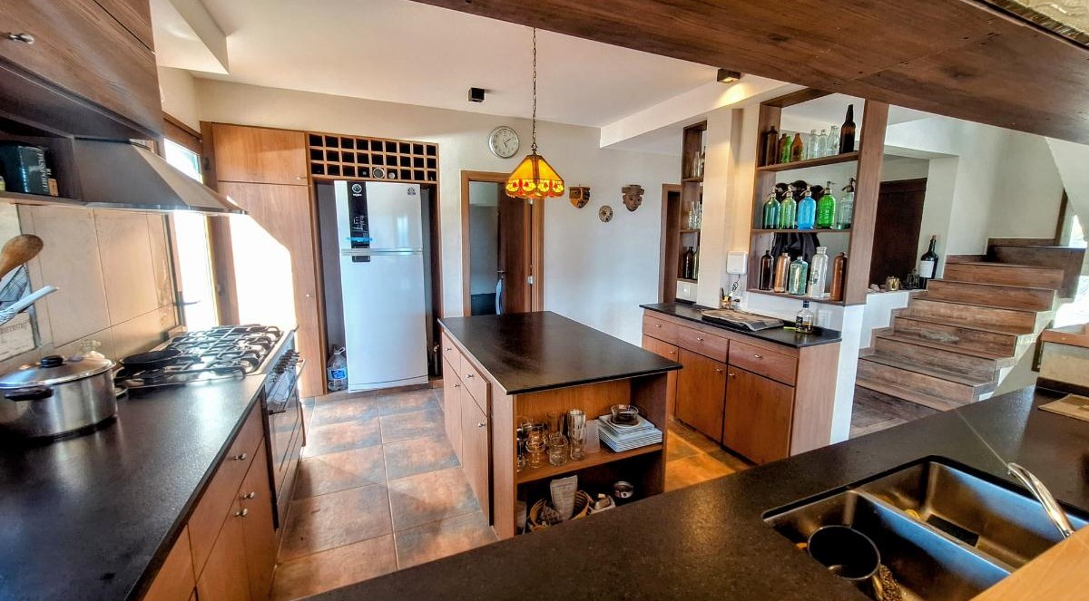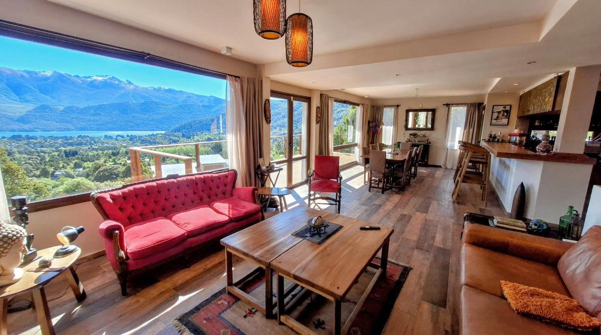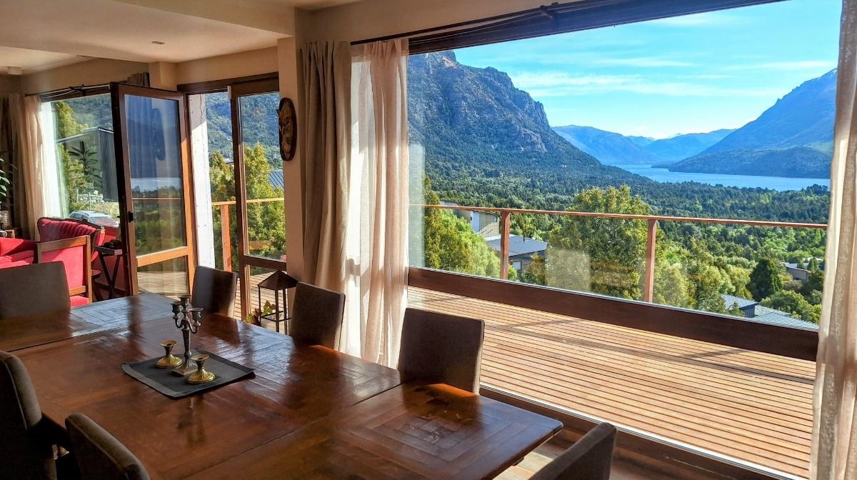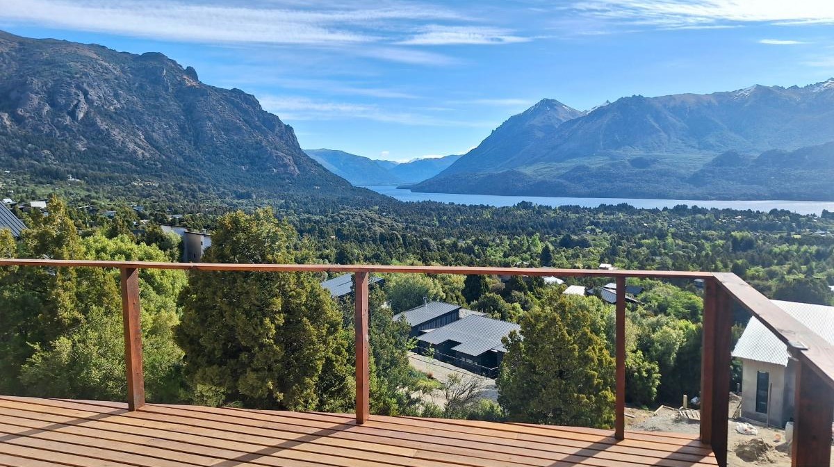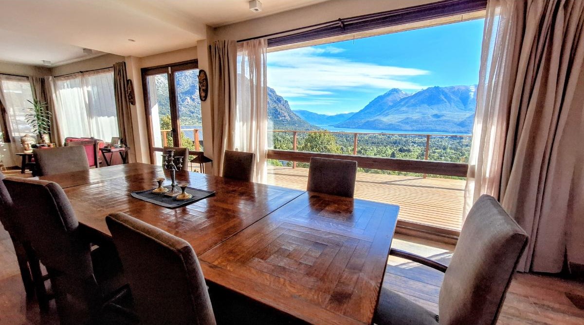 La planta baja sorprende con una cocina super equipada, un lavadero con lavarropas y secarropas, y un gran living comedor donde las vistas se vuelven protagonistas. Desde allí se accede al deck/balcón, el lugar ideal para disfrutar del amanecer sobre el lago o del atardecer entre montañas. También en este piso hay un baño con ducha.