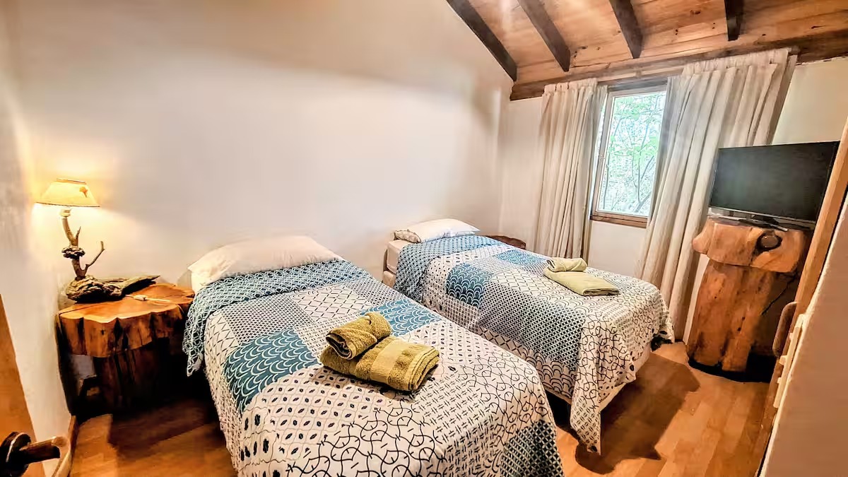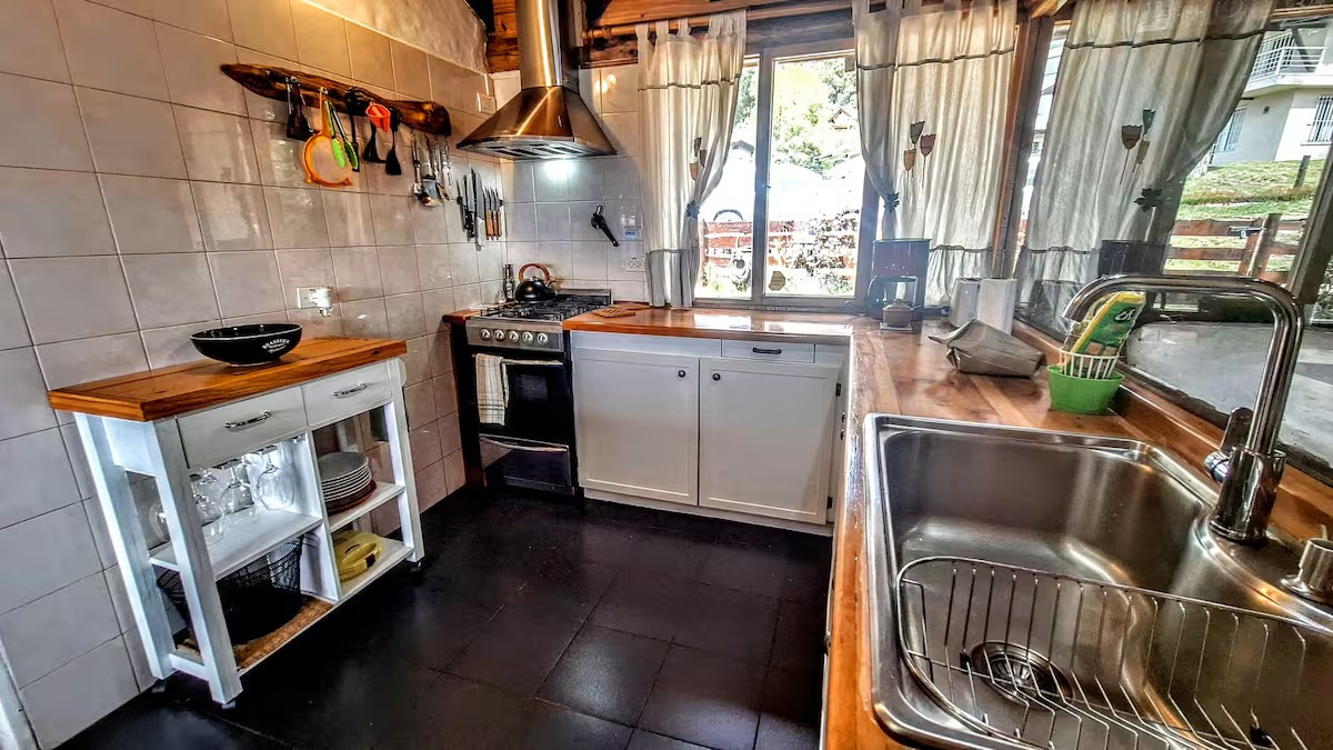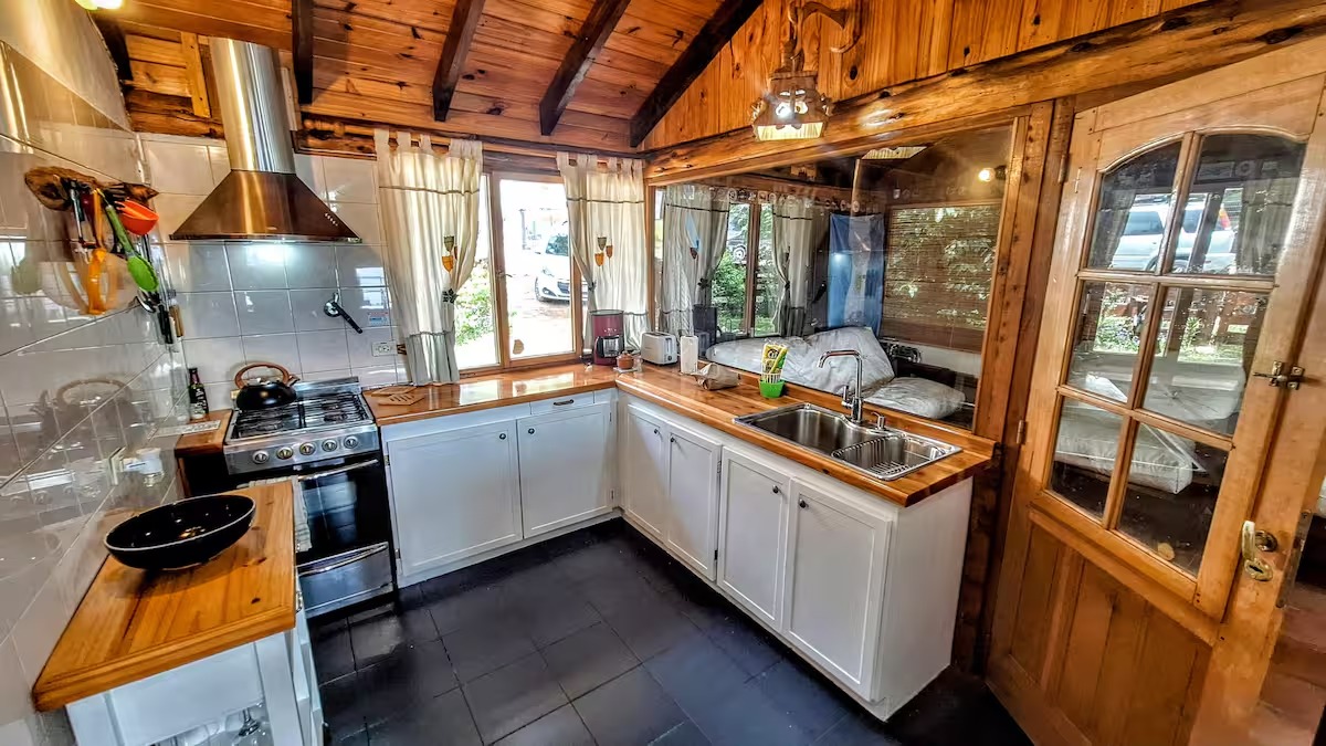 Amplios ambientes, calidez y comodidad la hacen ideal para disfrutar en familia o con amigos. El living comedor con chimenea a leña invita a compartir momentos inolvidables frente al fuego, mientras que la cocina —espaciosa y completamente equipada— permite preparar y disfrutar de comidas como en casa.