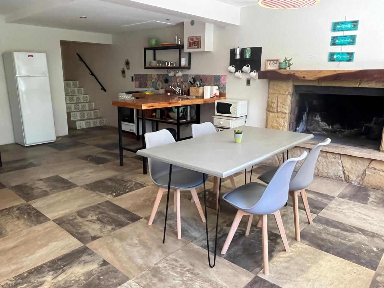 En la planta baja cuenta con un gran living comedor, muy luminoso, con vistas directas a la terraza y un cálido hogar a leña para disfrutar de un ambiente acogedor.