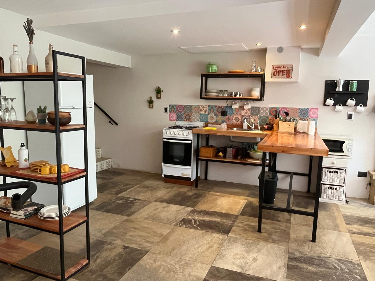 La cocina está completamente equipada e integrada al gran ambiente.