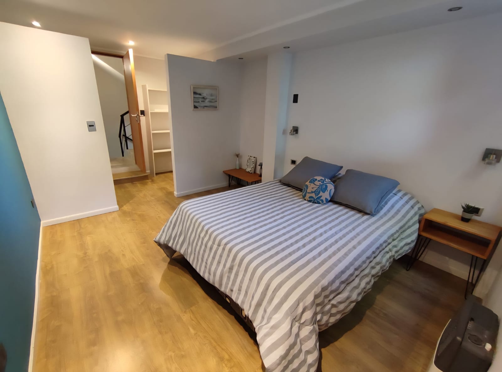 En la planta alta, la habitación principal cuenta con un vestidor y un baño completo en suite, asegurando total privacidad y confort. Además, en el descanso de la escalera se encuentra un práctico toilette.