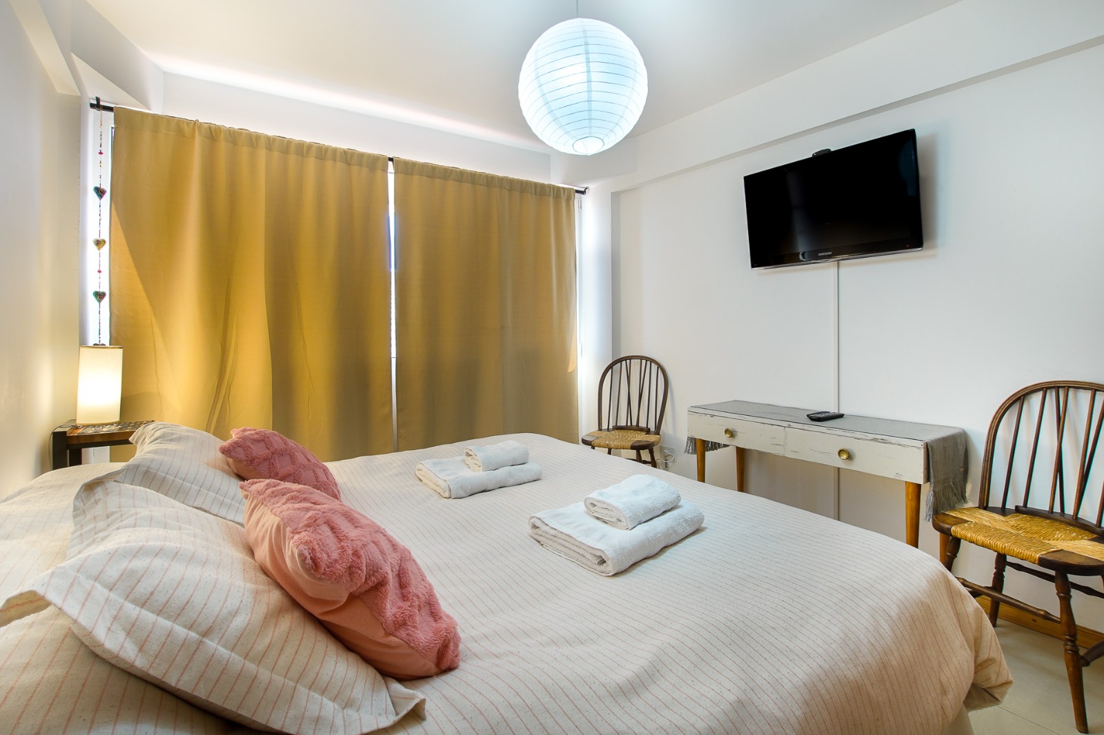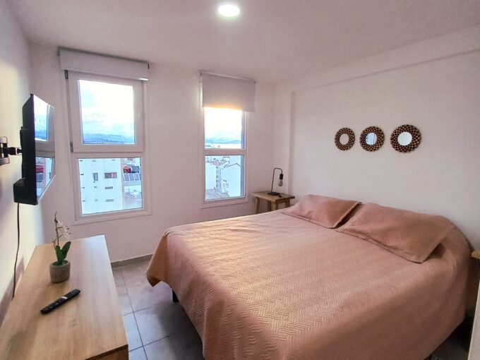 En la planta baja, la habitación matrimonial ofrece un espacio acogedor y tranquilo, con TV y un baño completo con antebaño que aporta un plus de comodidad.