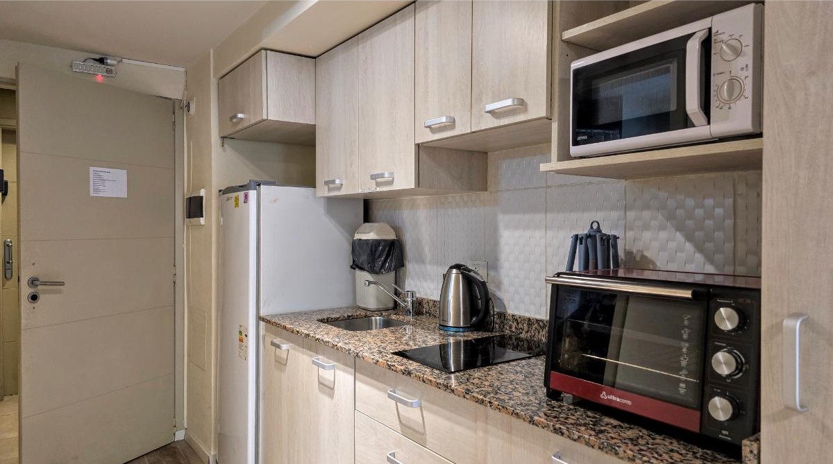 Cuenta con una cocina súper equipada, ideal para quienes disfrutan cocinar incluso estando de viaje, y un baño completo con ducha. Su diseño funcional y la excelente ubicación lo convierten en una opción perfecta para parejas o viajeros que buscan confort y practicidad en una estadía urbana con estilo.
