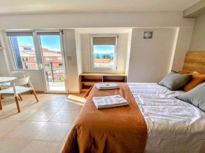 Este luminoso y confortable departamento de dos ambientes ofrece una vista impresionante al lago, y se encuentra ubicado a pasos de la Catedral y de la calle principal, en una de las zonas más buscadas de la ciudad.