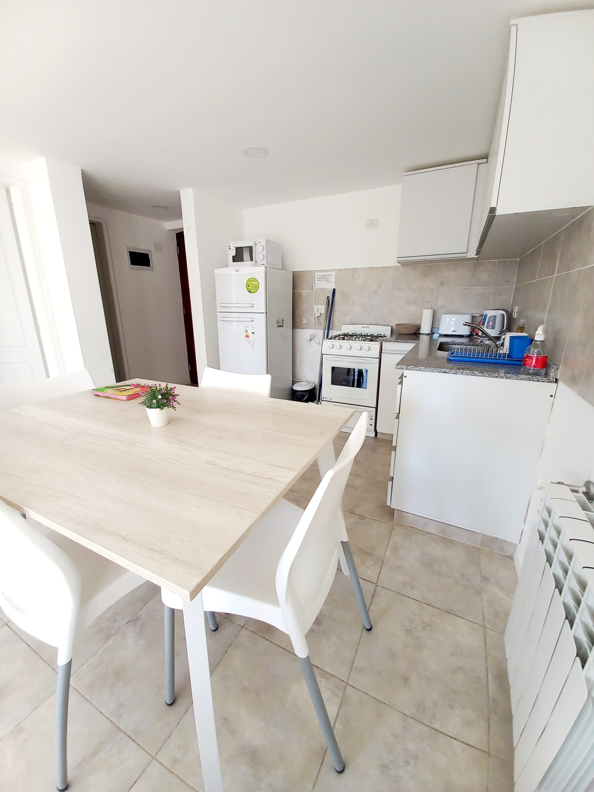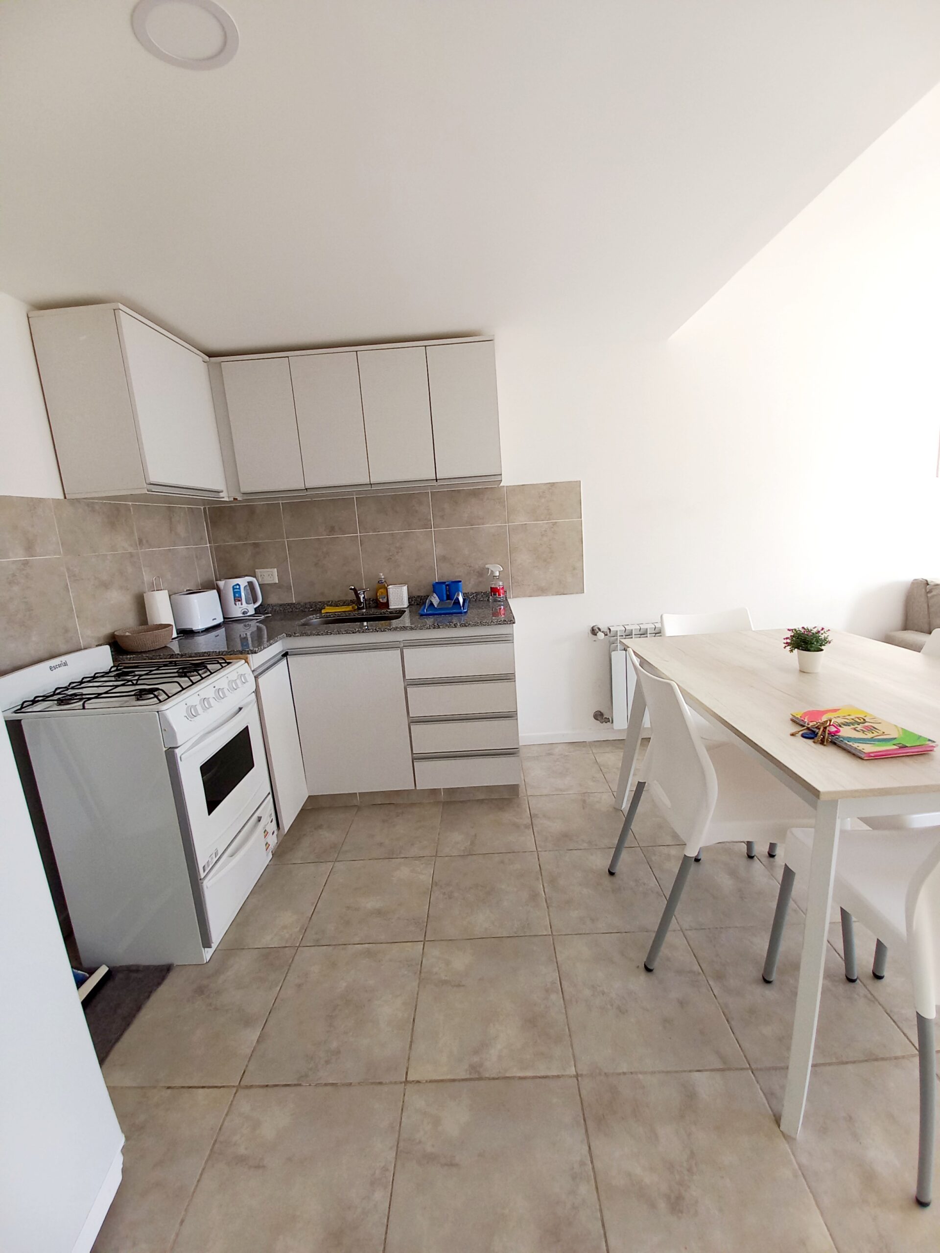 La habitación principal es muy luminosa y se puede preparar con una cama matrimonial o dos individuales, según lo que necesites. La cocina está equipada con todo lo necesario para que puedas cocinar como en casa. El living comedor es amplio y cuenta con un sofá cama, perfecto para descansar o alojar a alguien más.