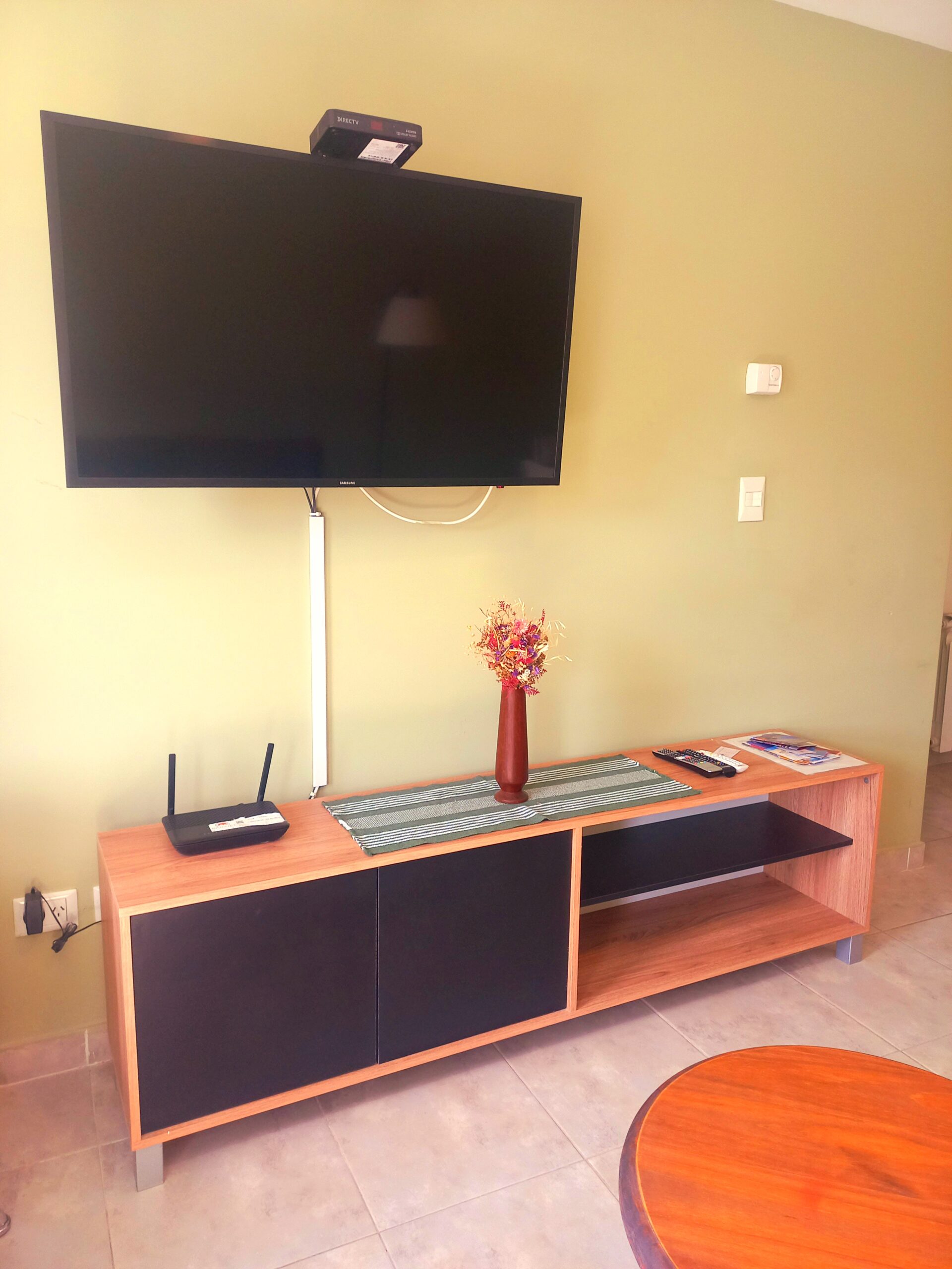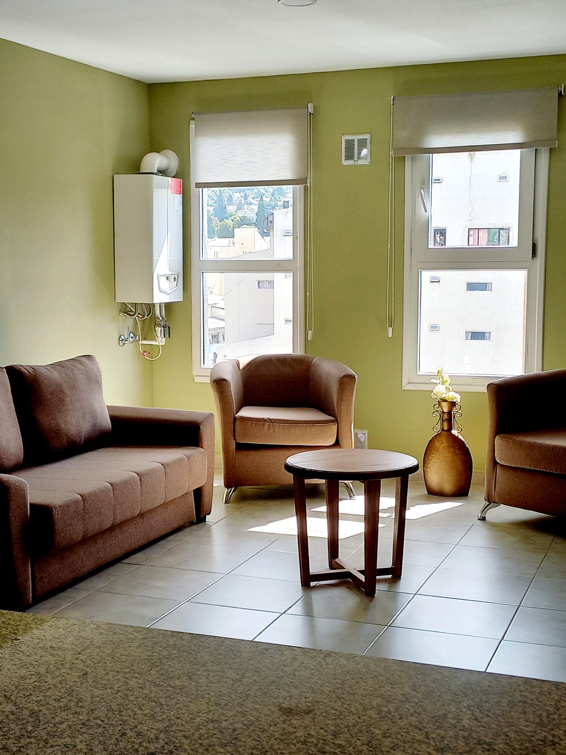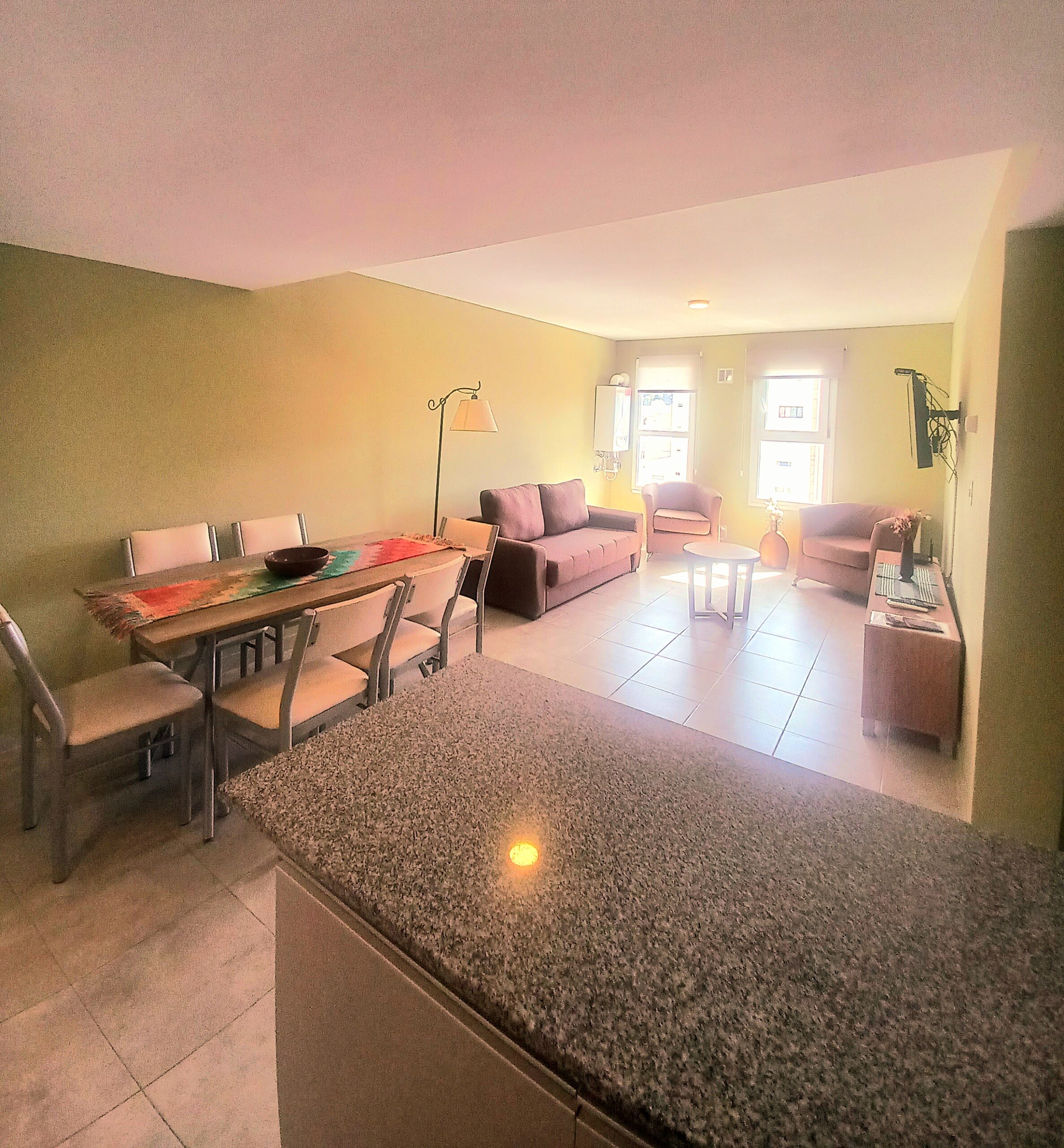 El living comedor, amplio y cómodo, tiene un sofá cama que ofrece espacio adicional para descansar o alojar a más personas.