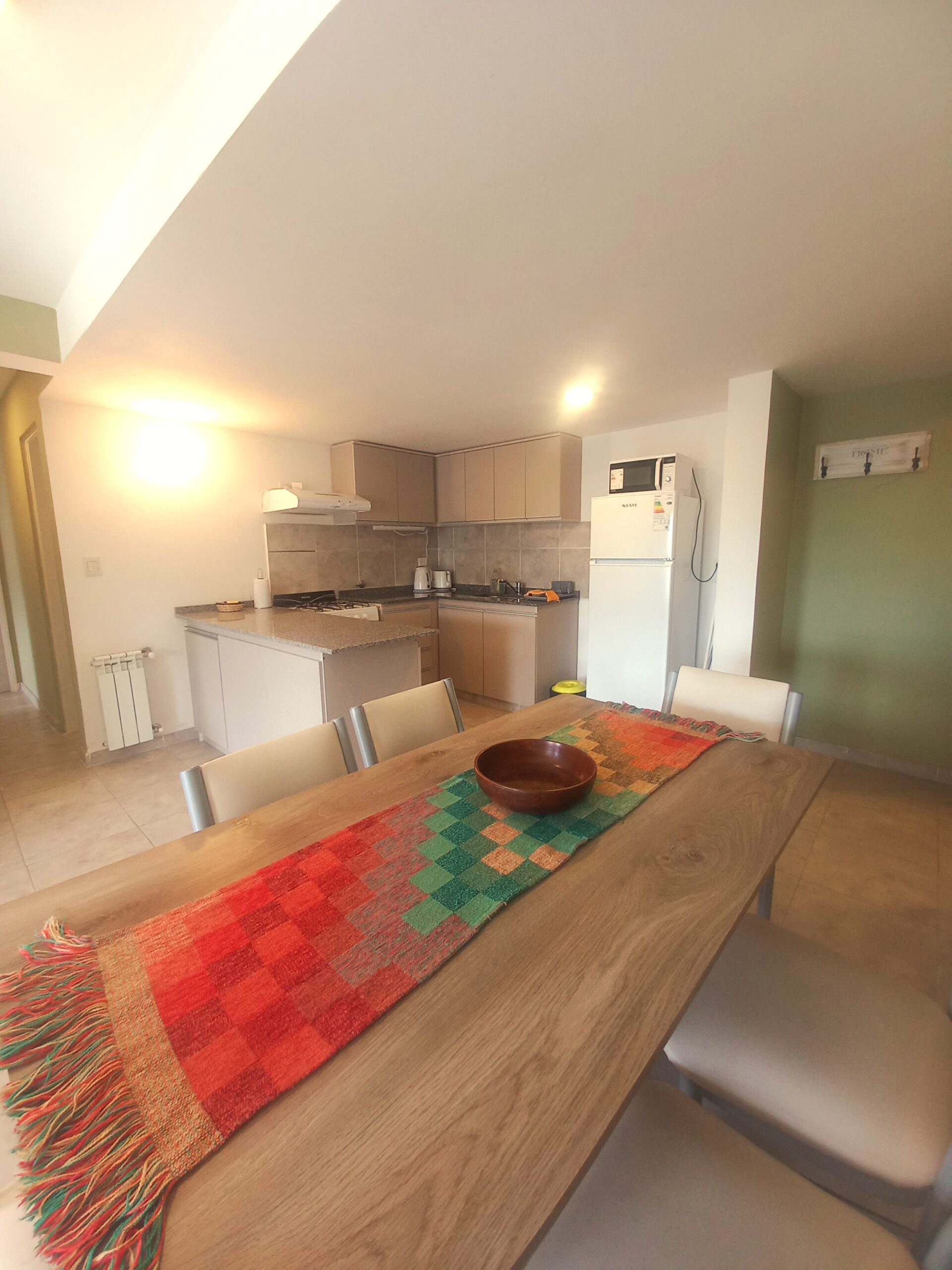 Cuenta con una habitación matrimonial con una hermosa vista al lago que invita a relajarse desde el amanecer. La segunda habitación puede armarse con dos camas individuales o una cama matrimonial, según lo que necesites. La cocina está completamente equipad, ideal para preparar tus comidas en casa.