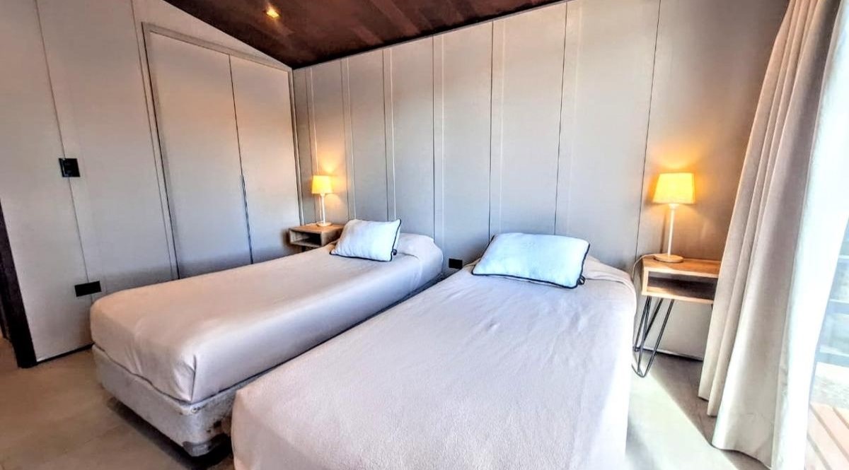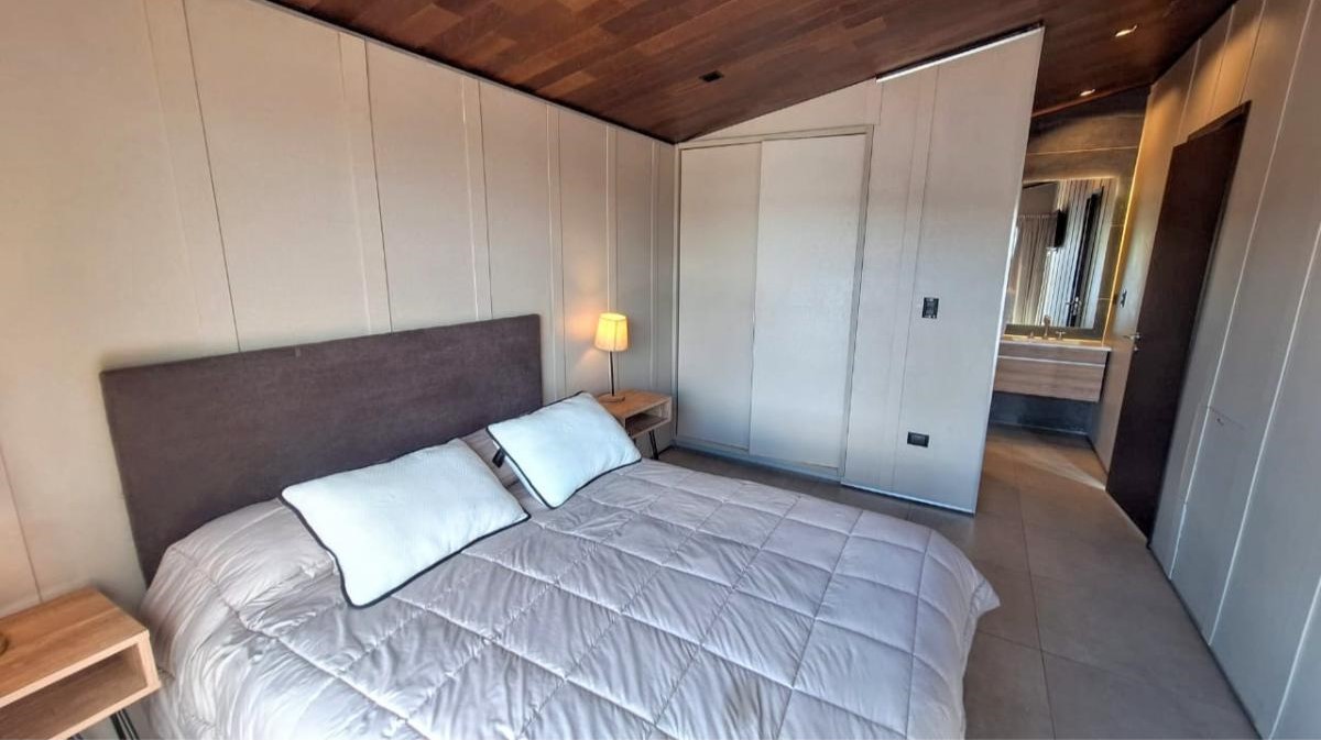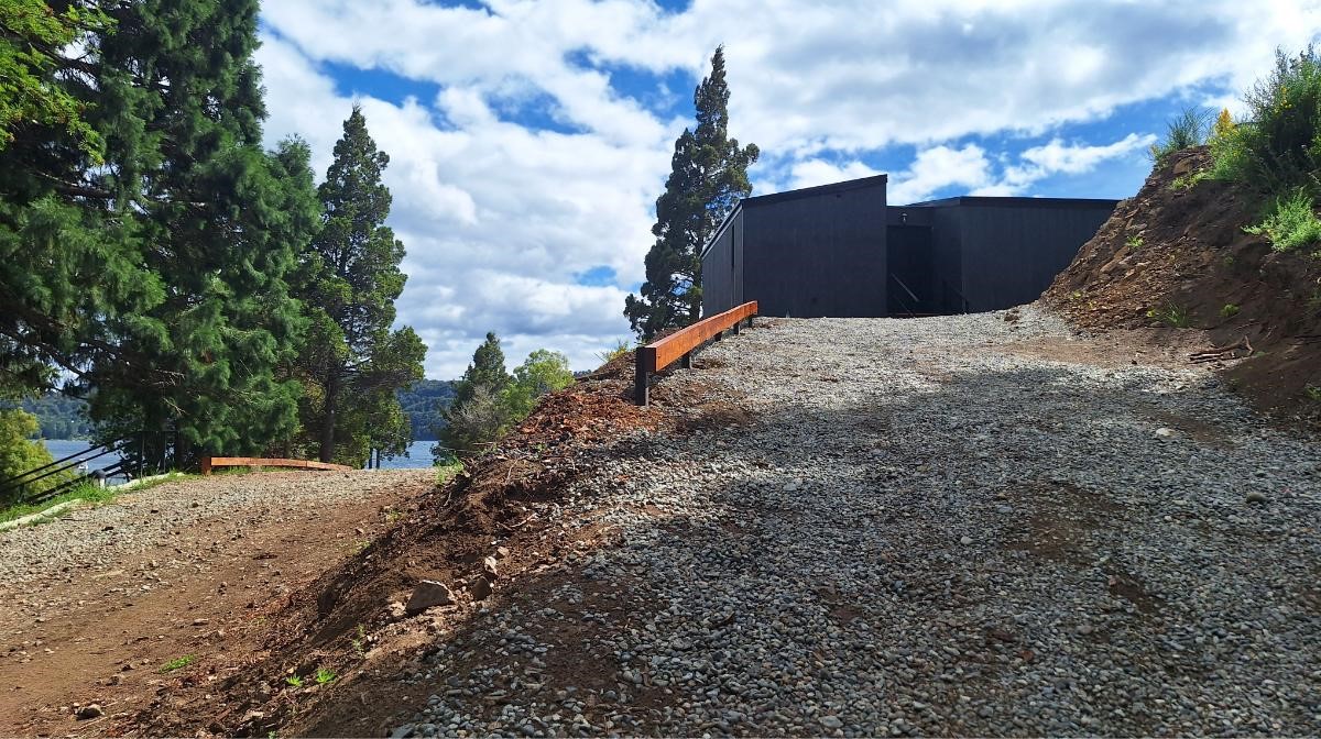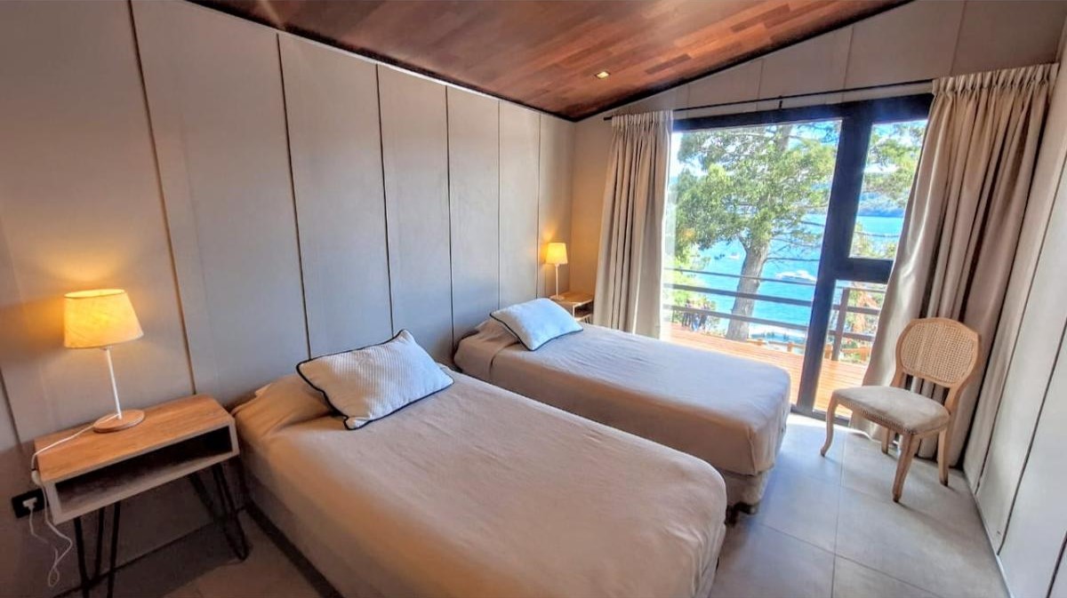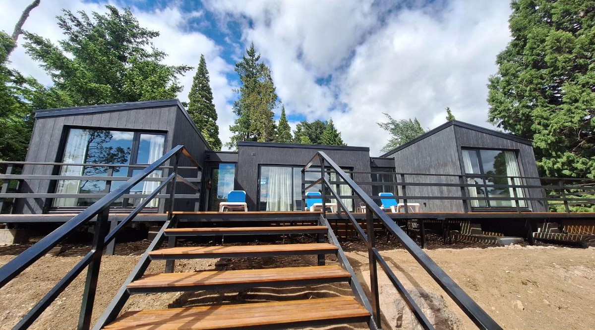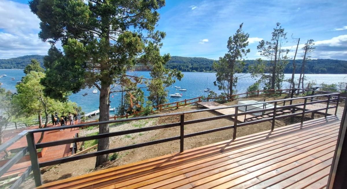 Sus ambientes luminosos y contemporáneos se abren hacia maravillosas vistas al brazo Campanario del Lago Nahuel Huapi, creando una conexión permanente con el paisaje patagónico. El acceso directo a la costa transforma cada día en una experiencia especial: amaneceres calmos junto al agua, tardes contemplando el reflejo de las montañas y noches donde el lago parece detener el tiempo.