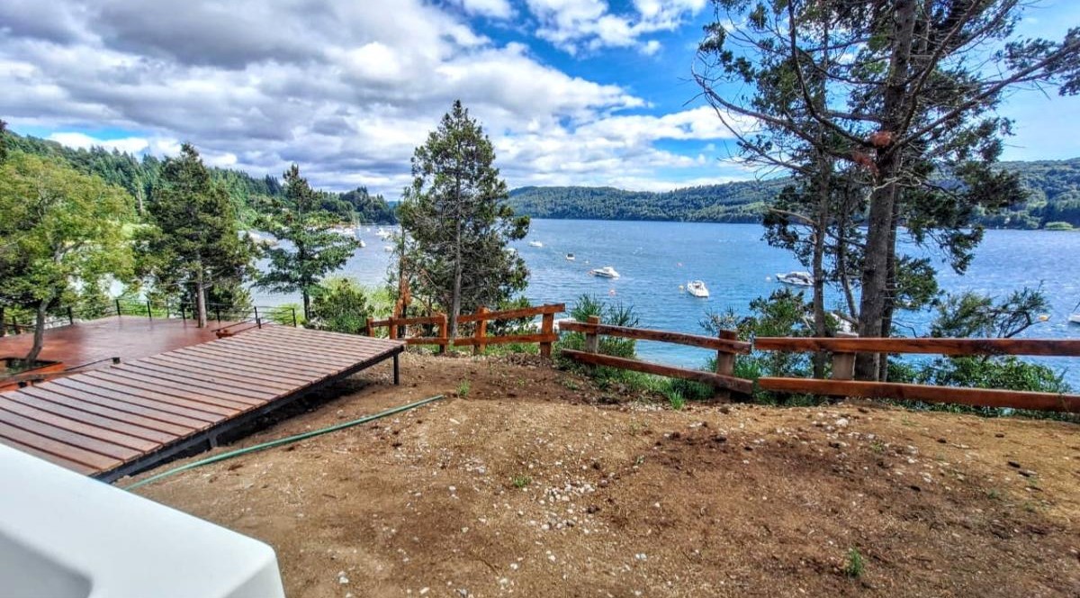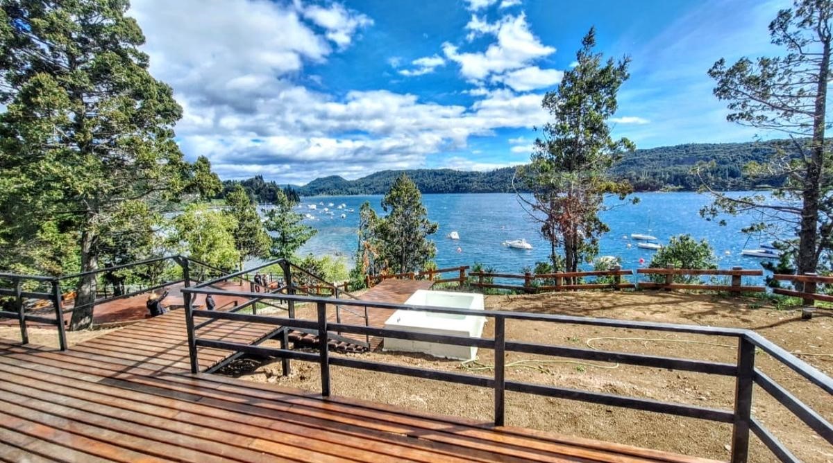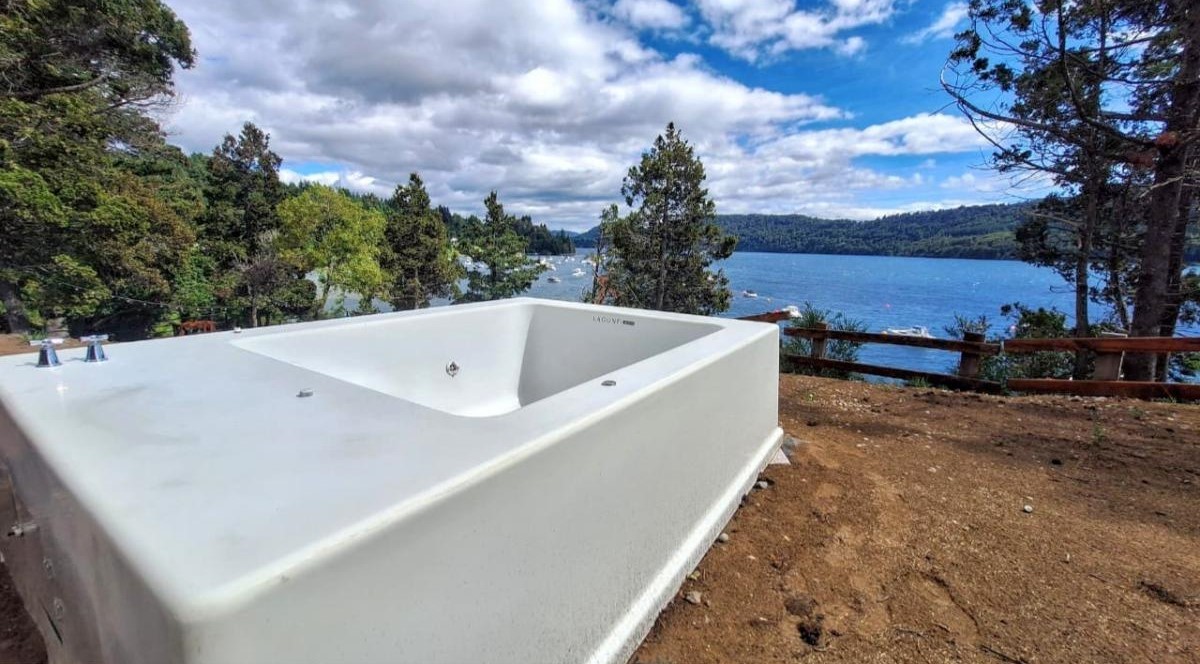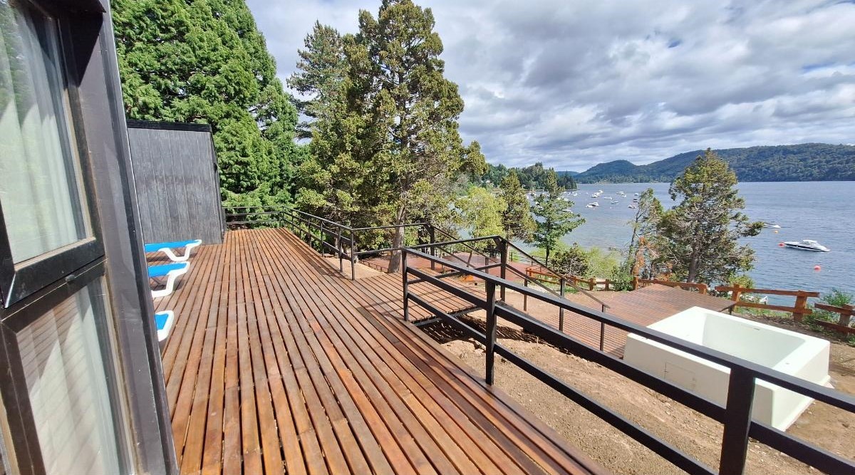 En el exterior, un gran deck se convierte en el corazón del disfrute al aire libre. Equipado con reposeras, chulengo, mesas y sillas, invita a contemplar el paisaje desde un lugar privilegiado. Allí también se encuentra un jacuzzi exterior, perfecto para relajarse mientras el entorno natural se despliega a tu alrededor, con el lago y las montañas como escenario.