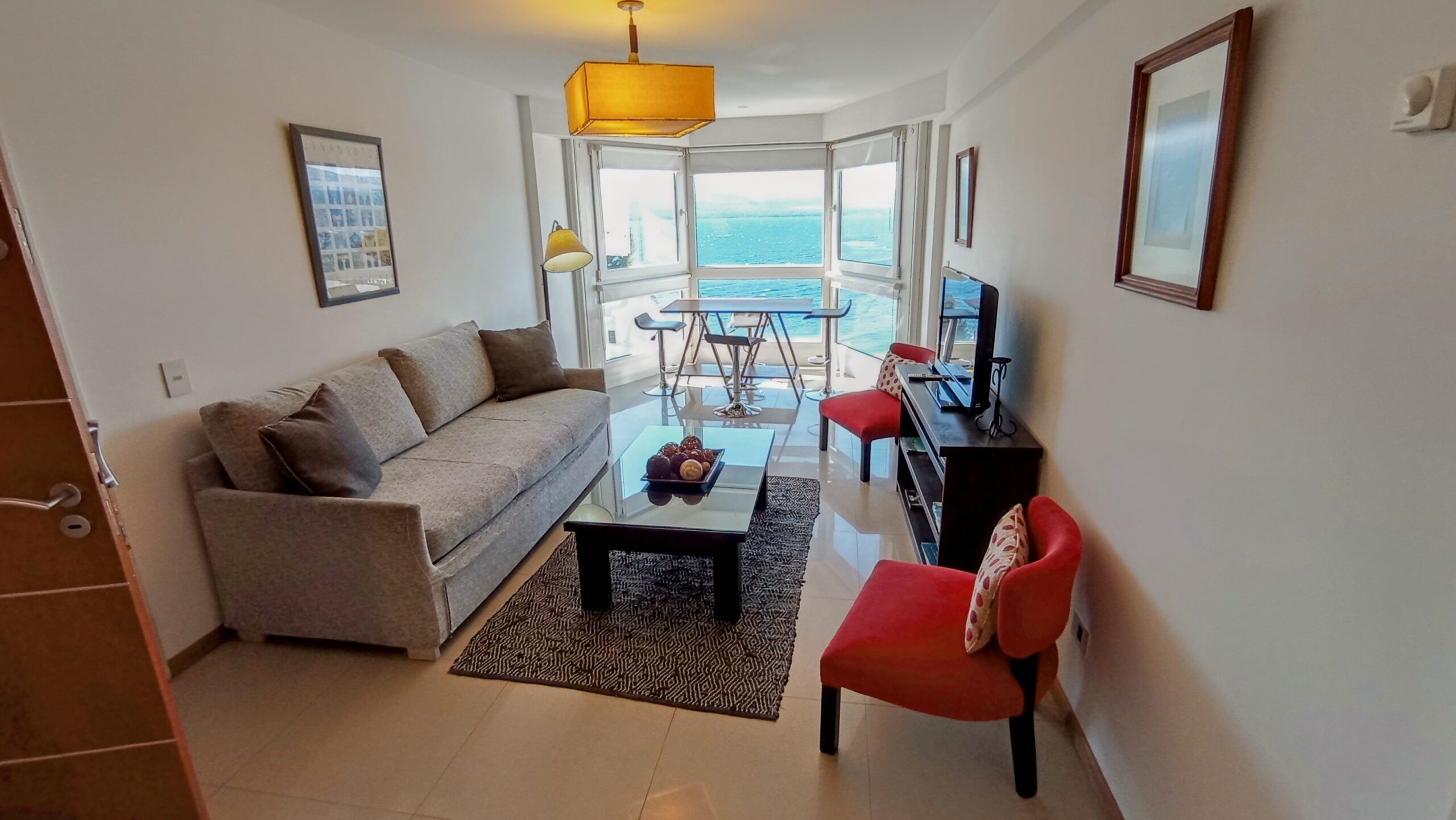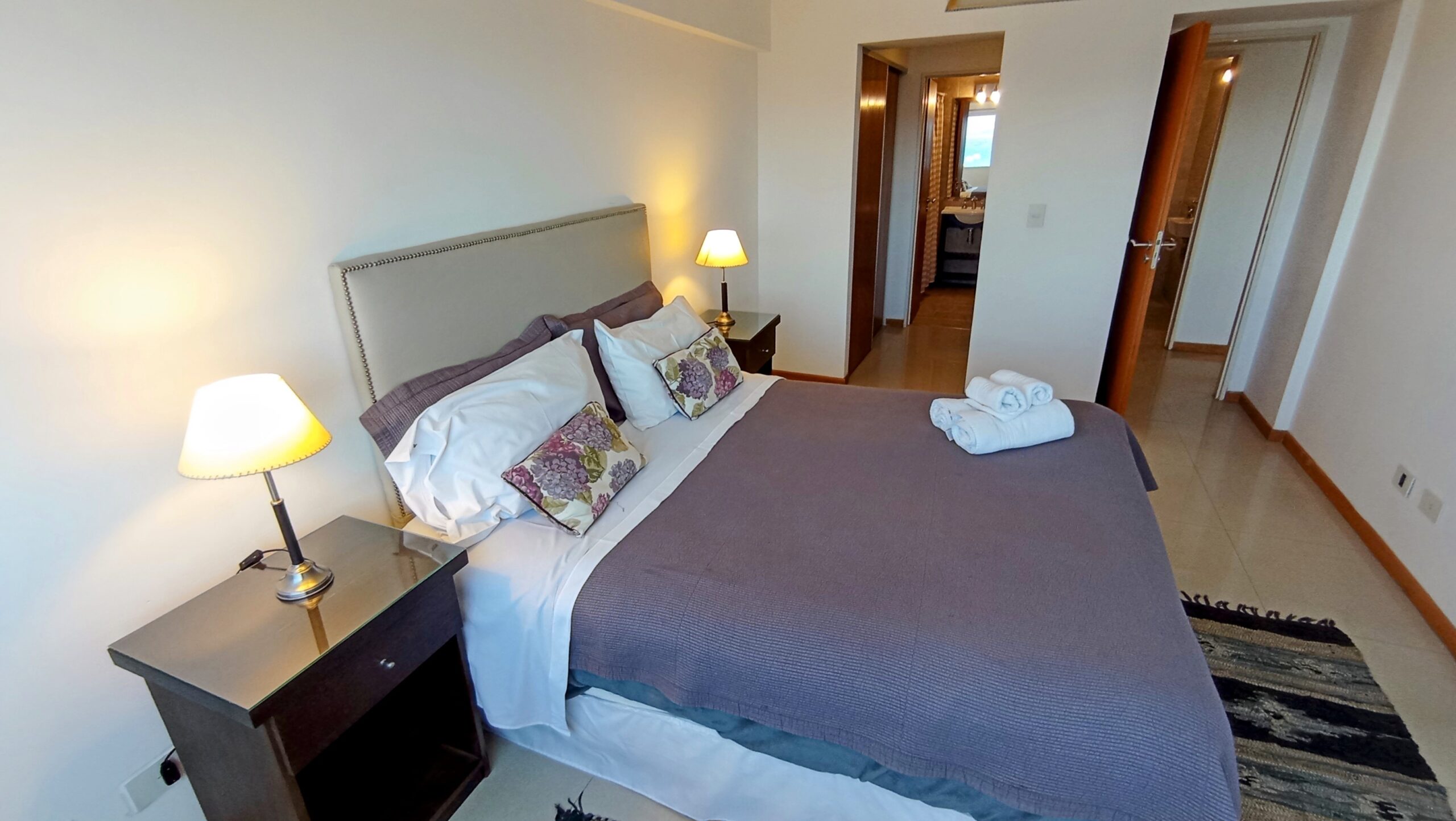 Tiene un living comedor con sofá cama y una cocina equipada con todo lo necesario, ambos con vista al lago que se cuela por los ventanales y te acompaña en cada momento. La habitación principal también tiene vista y cuenta con cama matrimonial y baño en suite. Además, hay un toilette extra que suma comodidad si vienen en grupo.