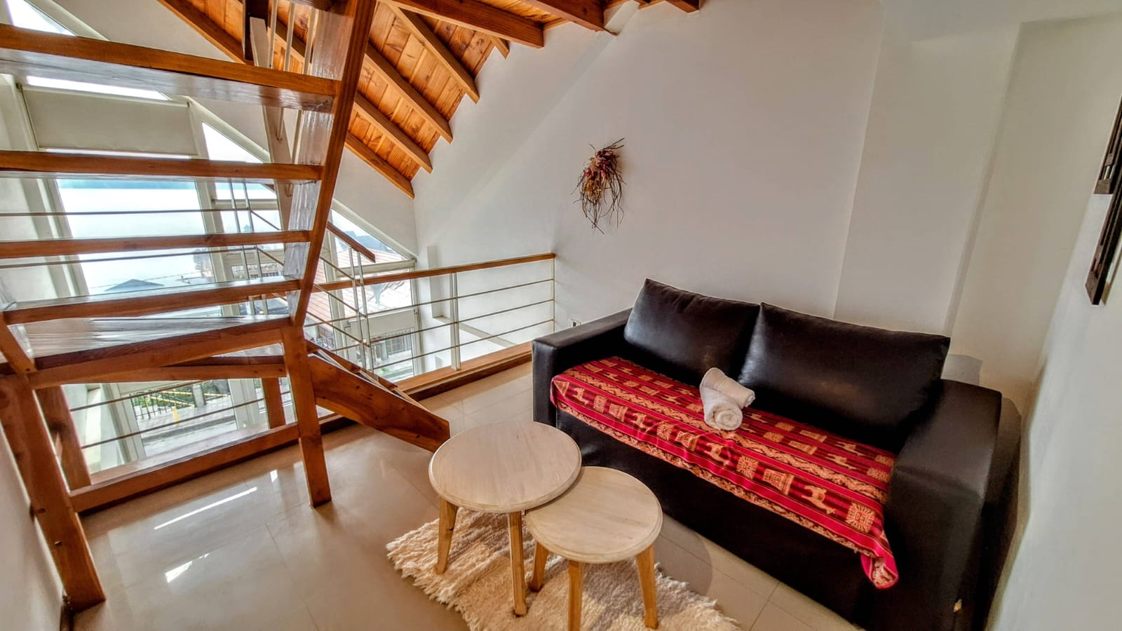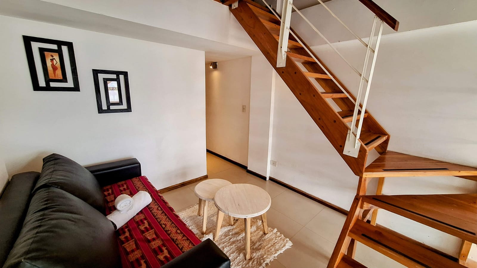 En el primer piso hay un living con sofá cama, perfecto para descansar o disfrutar de una película.