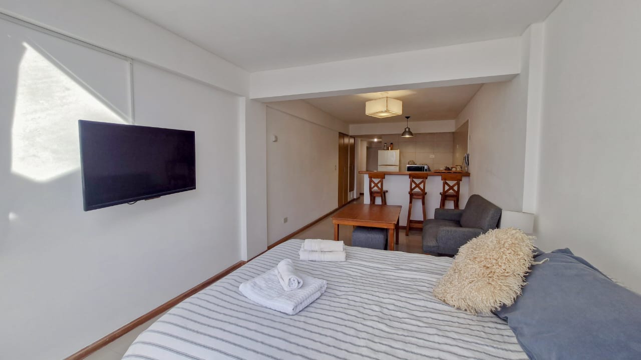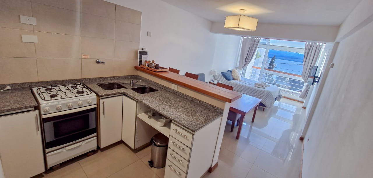 Departamento de un ambiente y medio con balcón y una vista al lago que realmente sorprende.