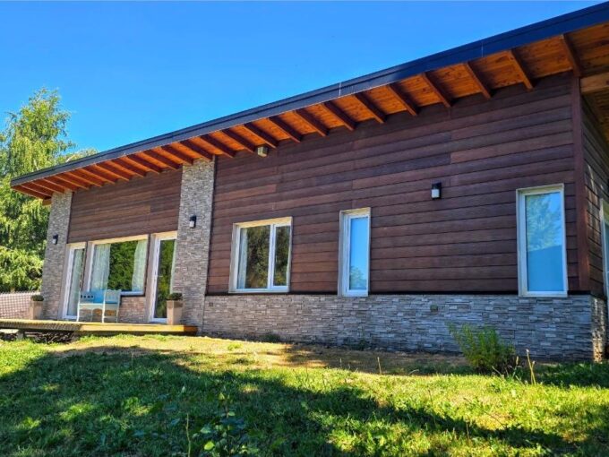 Moderna casa familiar a pasos del Lago Nahuel Huapi Ubicada en un amplio terreno plano…